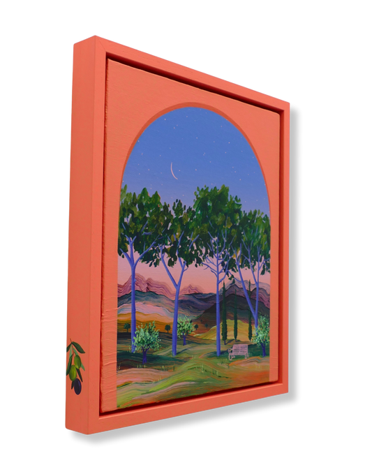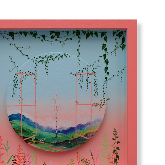 She collects references from the everyday, from travels to exotic places and through memories both present and in childhood. Imagination, memory and imagery allow her to translate a dreamlike, fairytale scenario onto the surface, playing with colour, light and dimensions. She explores history, observes nature and combines elements of architecture, creating her own narrative as if existing in another time or place.