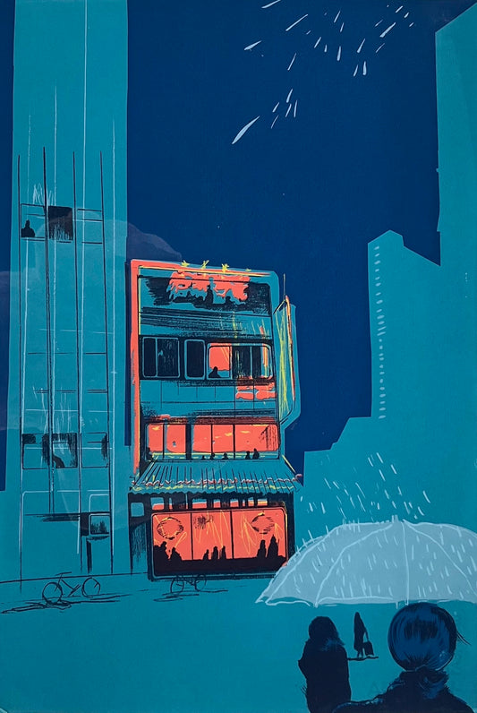 Much of Anna’s work is concerned with transition and contrast - recently taking the form of people attempting ‘flight’ - divers, swimmers, wing-walkers and more. A whimsical and illustrative artist based in Bristol, Anna transforms her fascinations and observations of the world into drawings, screen prints, collages and paintings. Architecture plays a large part - Victorian and Brutalist buildings populating her artworks much like they have done her life - Liverpool, London and Bristol. Anna is also inspired by the nostalgic and the retro - her artworks have a kitsch charm and combine storytelling with visual playfulness.