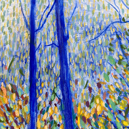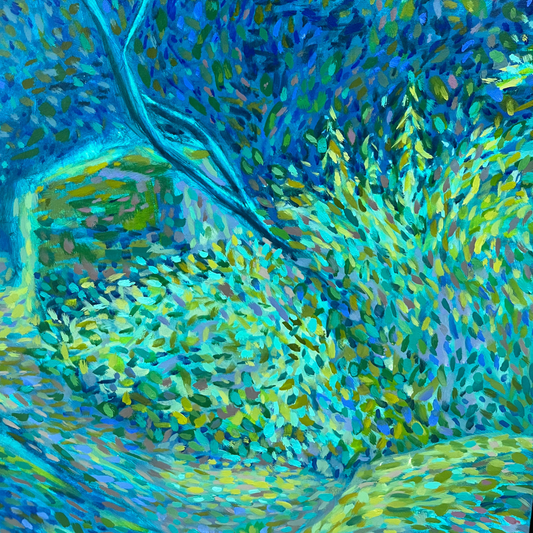 Beau Roberts, a young emerging artist based in London, explores the interplay of reality and imagination through oil painting. Rather than a literal depiction of landscape, figure, and still life, he challenges perceptions of the ordinary. Emotion is expressed through his vibrant use of colour and shifting forms; inviting the viewer to reflect on their concepts of residual energy and reality. His paintings are full of vivid, saturated colour and unique markmaking - small dashes and strokes which sweep our eye across the painting surface.