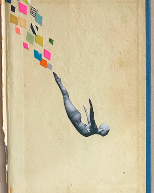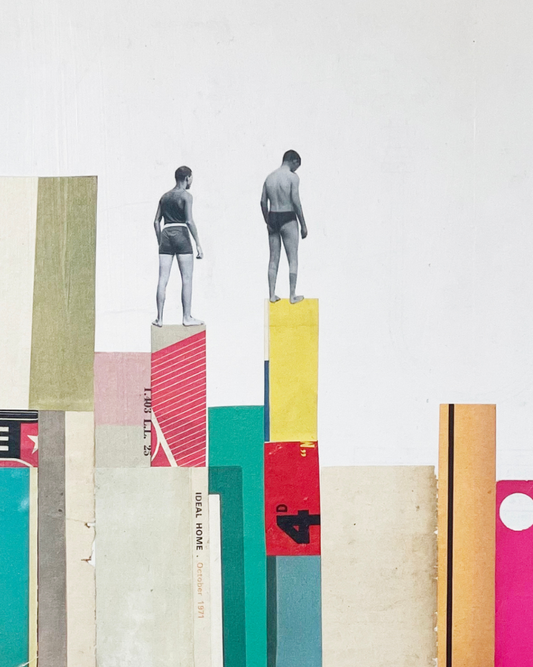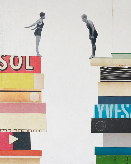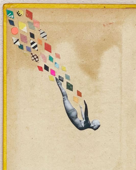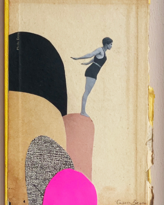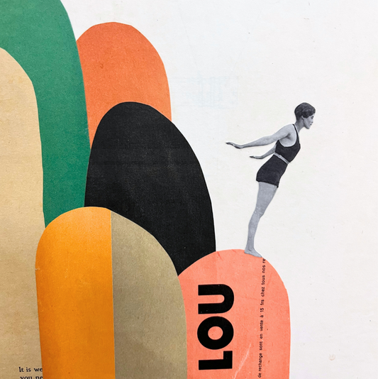 As a child Cassia loved to destroy books - creating new outfits and stories for the characters she found within the pages. Now, as a Brighton-based paper collage artist, she continues this curious and whimsical collaboration between ideas old and new. The found and vintage pages and papers she uses are full of stains, rips and hand lettering. These marks of their past lives often become a jumping off point for Cassia’s re-imagining, as she deftly creates new narratives through unexpected and often nostalgic compositions. Inventive use of imagery, shape and colour defines Cassia’s playful practice - the joy of the process tangible in her final creations.