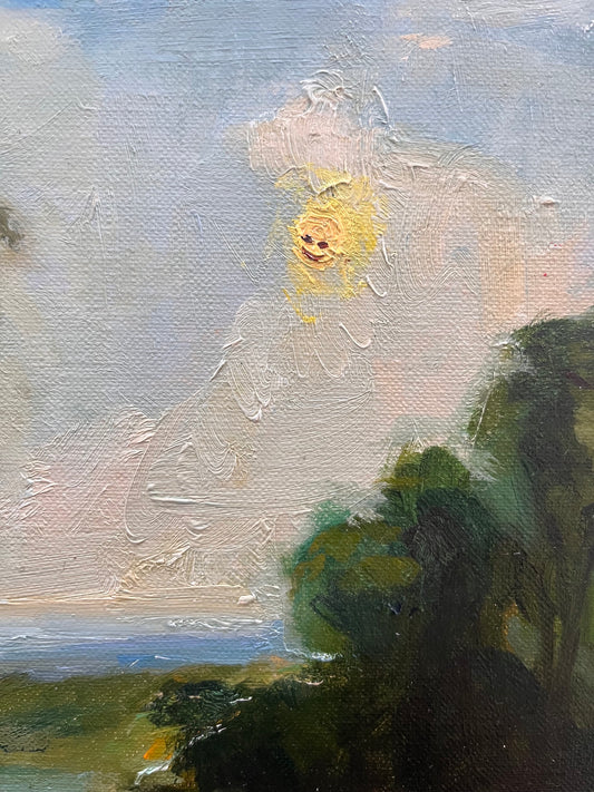 She is interested in the place where old and new worlds collide. The ‘fuzzy edge’ between that which is real and that which is imagined. Anchored in careful observation from life, she introduces chromatic underpainting, broken colour and unexpected imagery to subvert our expectations. In this way her paintings move between the domestic and the sublime, the joyful and the jarring, the dark and the light.