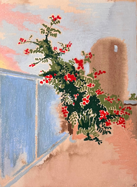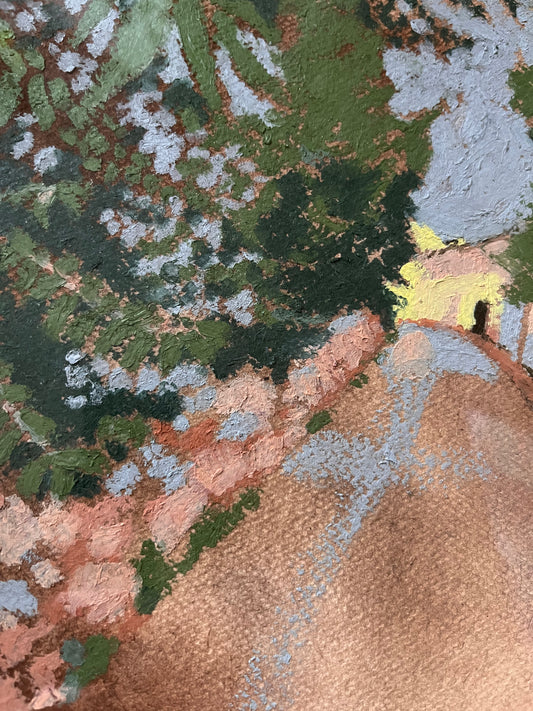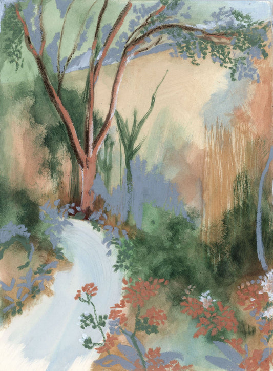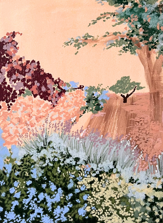Johanna is an East London-based artist who uses a unique visual language to approach portraiture, landscape and floral artworks. With an experimental and playful approach to mark-making, she rarely uses a paintbrush and instead uses tools which allow her to blur the boundaries between representation and abstraction. It is in this elusive space that order and chaos intersect, with compelling and sometimes unpredictable results. Faces emerge from pools and puddles of ink. Gentle landscapes are rendered through a collection of pastel marks on a watercolour ground.