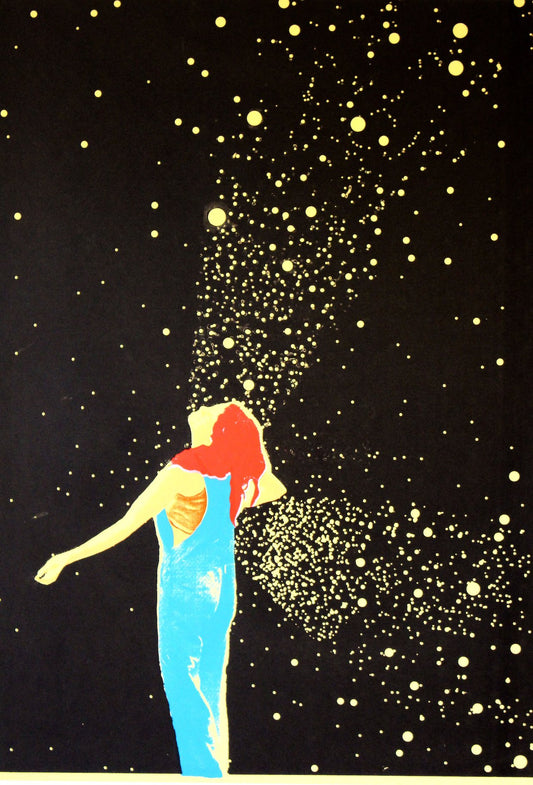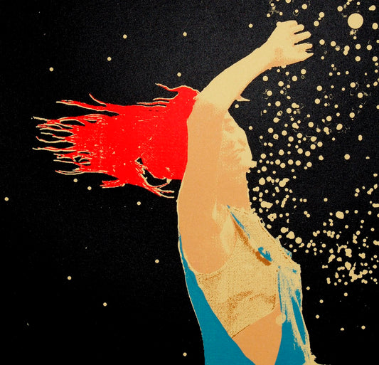 Working from her studio on Lower Clapton Rd, local artist Julia is in the business of Joy. Her artworks employ a fusion of monotype and screen printing techniques, many of them hand-finished with sparkling gold leaf. Through her dancing, exuberant figures we feel effervescence and playfulness. Clouds explode with colour and twinkling rays of light.
