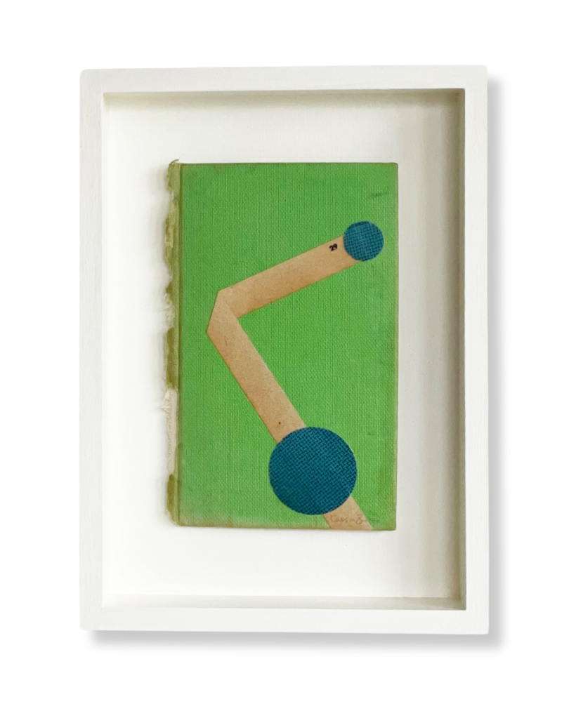 Original hand-cut paper collage using found and vintage papers - created on a vintage book page.
