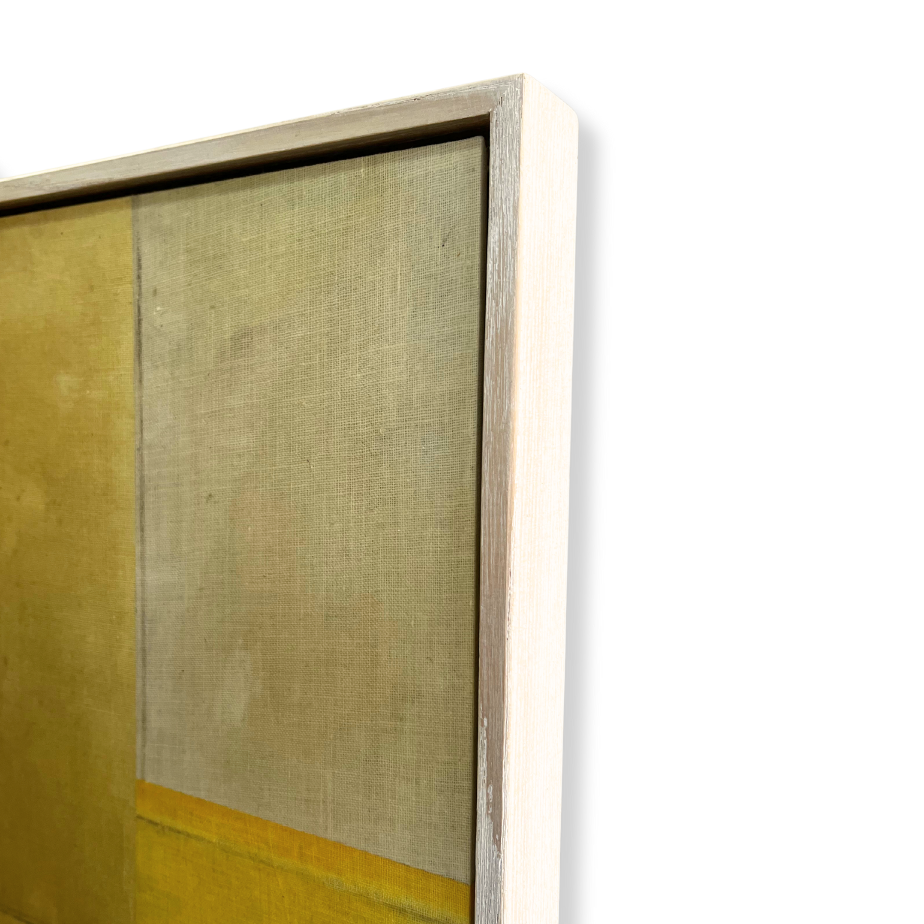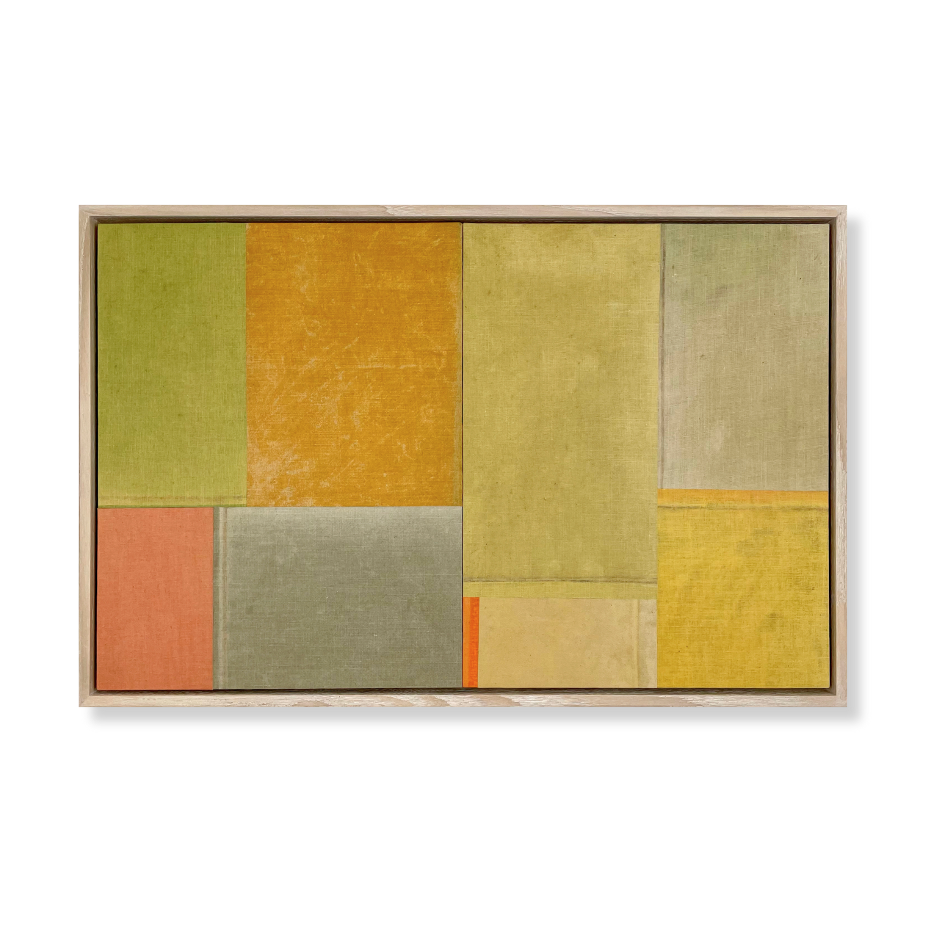 Original artwork created from vintage book cloth on board, framed floating within a handmade sustainably sourced slim oak tray frame (no glass)