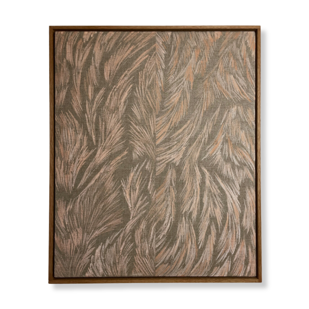Original painting on linen - created using foraged earth pigments. Framed in a solid oak floating tray frame measuring 58 x 48 x 4 cm.