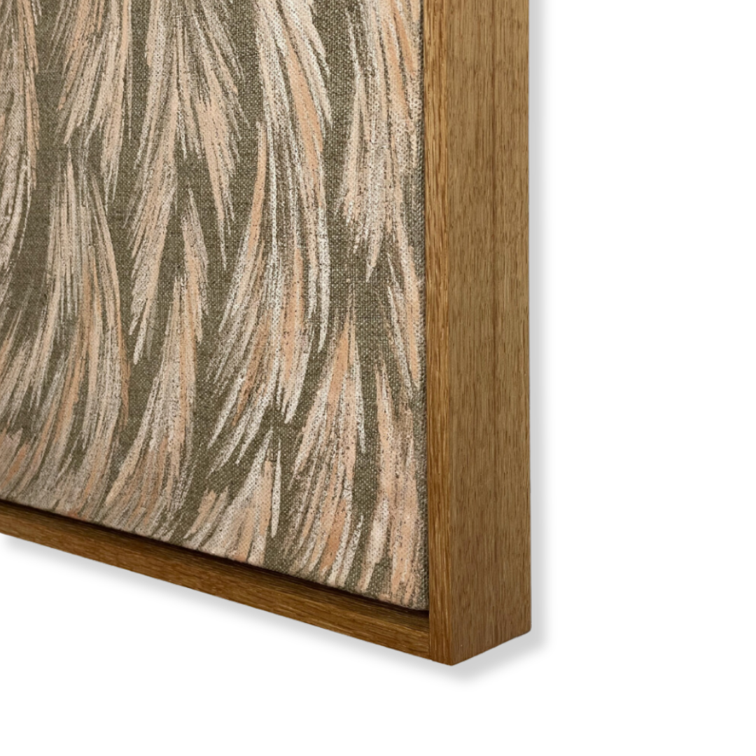 This artwork is framed in a solid oak floating frame. It is ready to hang.