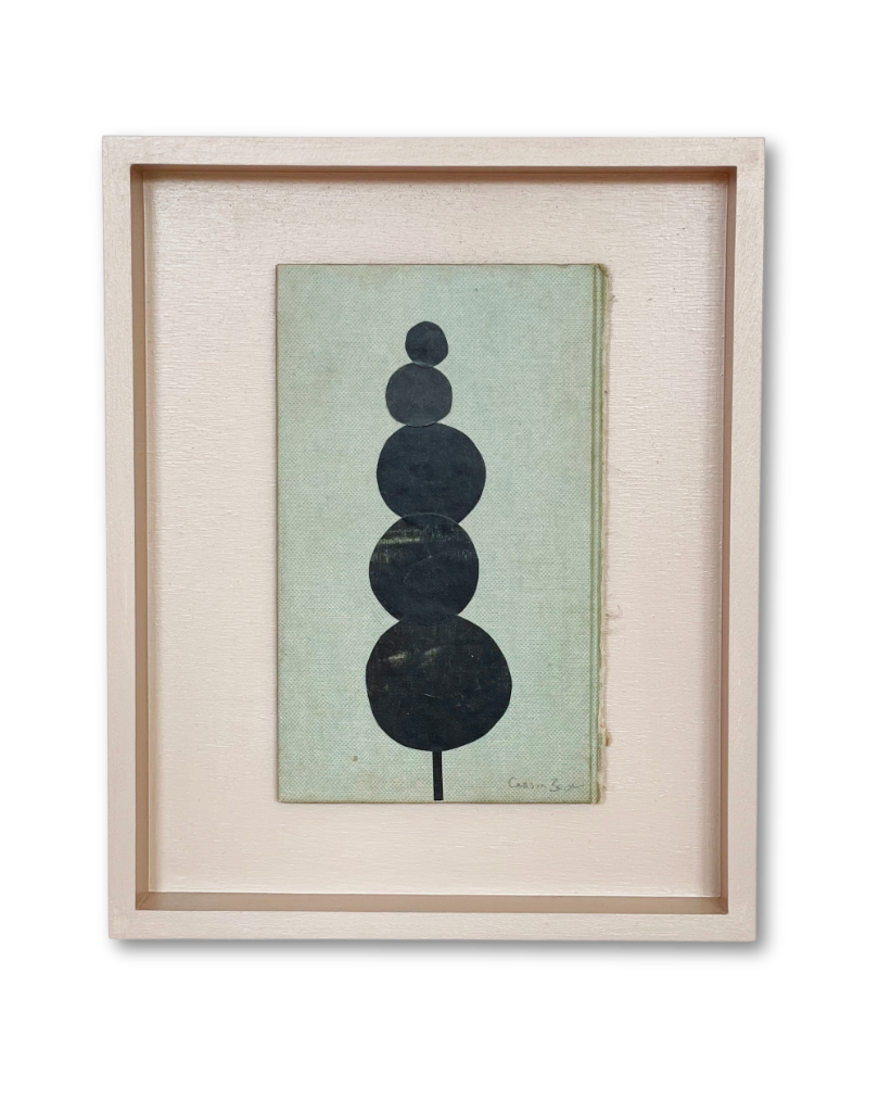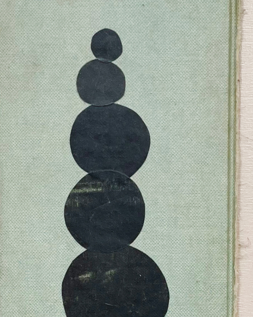 Original hand-cut paper collage using found and vintage papers - created on a vintage book cover.