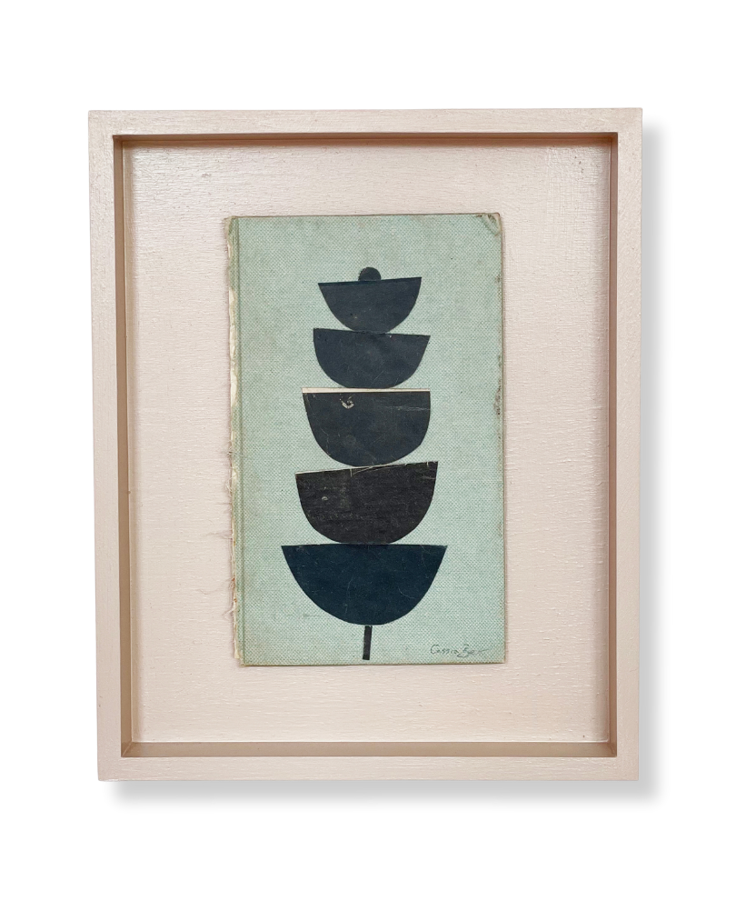 Original hand-cut paper collage using found and vintage papers - created on a vintage book cover.