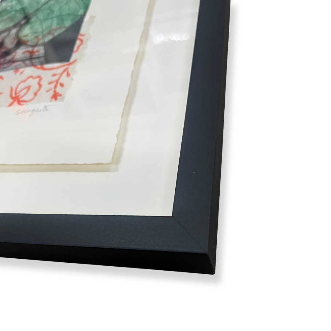 Signed AP limited edition variable tetrapak print with chine-colle measuring 28 x 37 cm. This artwork has been framed floated in a black matte frame measuring 39 x 48 cm.