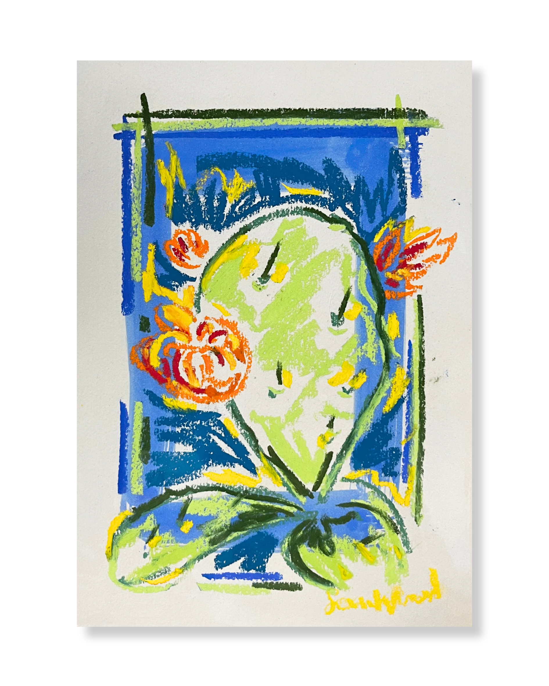 Oil and soft pastel artwork on paper measuring 17.5 x 25 cm