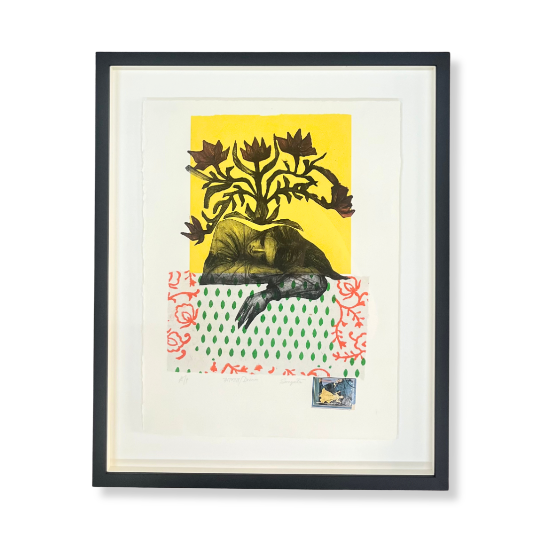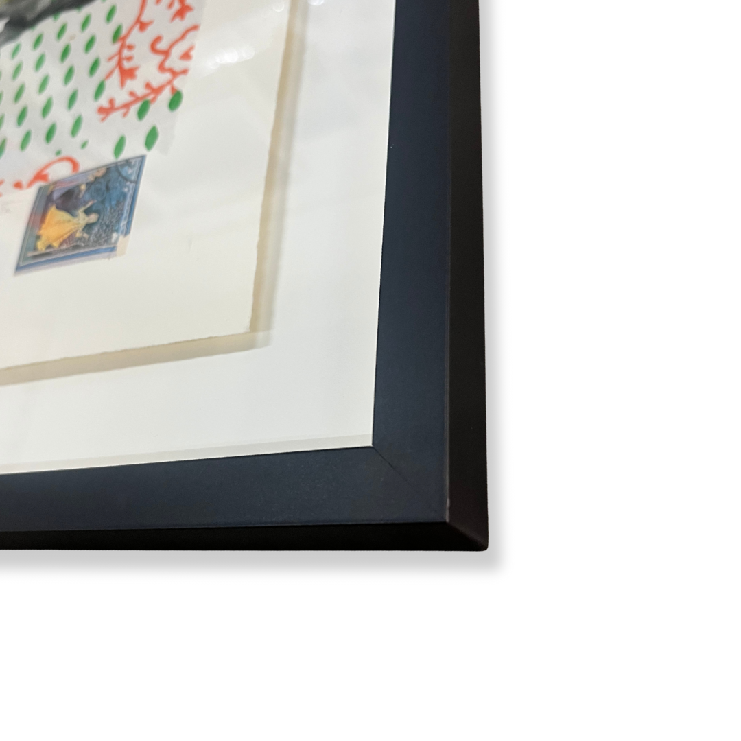 Signed AP limited edition variable tetrapak print with chine-colle measuring 28 x 37 cm. This artwork has been framed floated in a black matte frame measuring 39 x 48 cm.