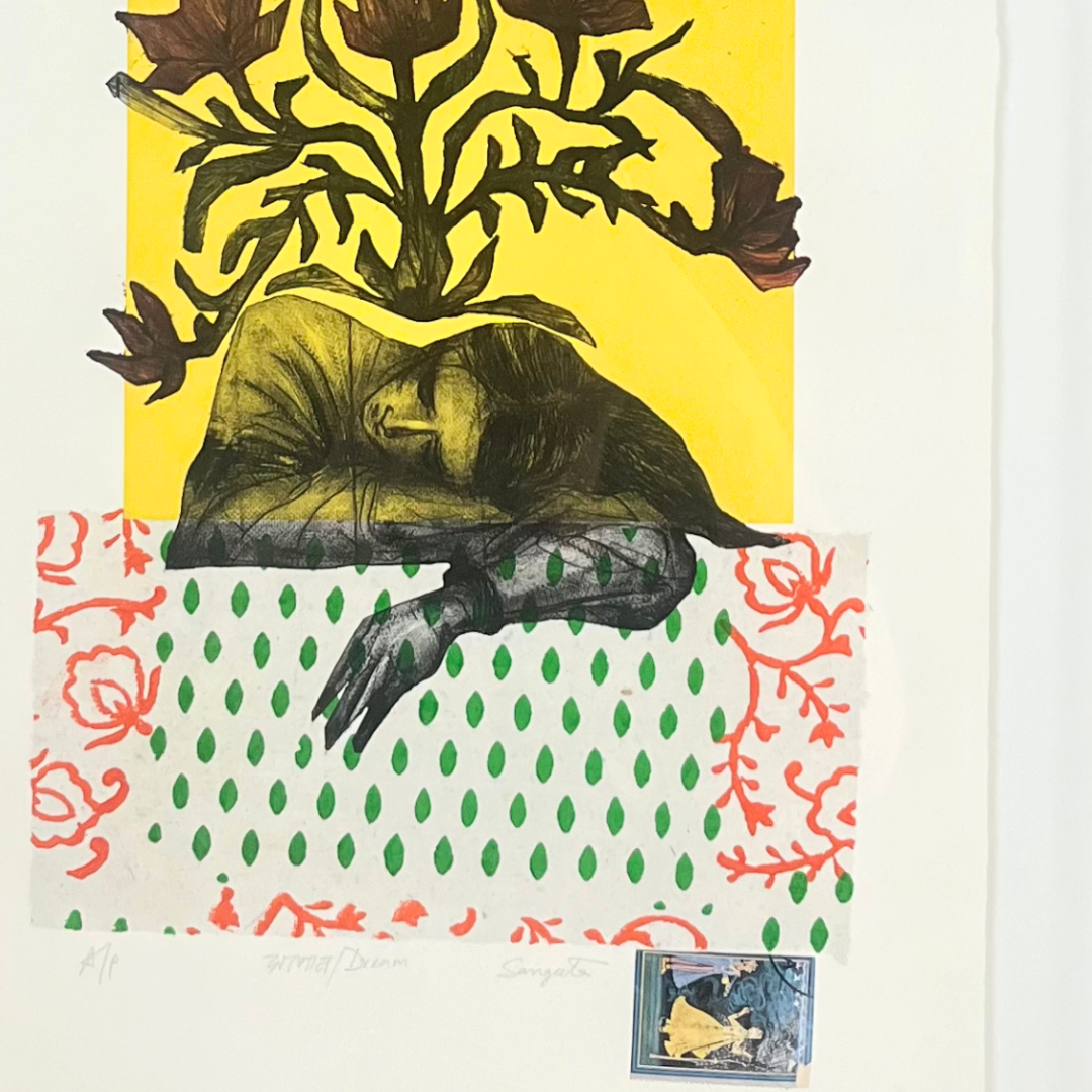 Sangeeta Bhagawati is an Indian printmaker now calling London home. She specializes in relief and intaglio printing, weaving her life drawing practice into her printmaking. Central to her work are the mark makings and carvings on the body, which serve as a canvas for exploring themes of pleasure, loss, power, and growth. Her relief and intaglio prints depict bodies in both connection and solitude, inviting viewers to engage with diverse interpretations. Through her carvings and expressive marks, Sangeeta aims to evoke a rich spectrum of emotions, making the human form a focal point of her artistic expression.