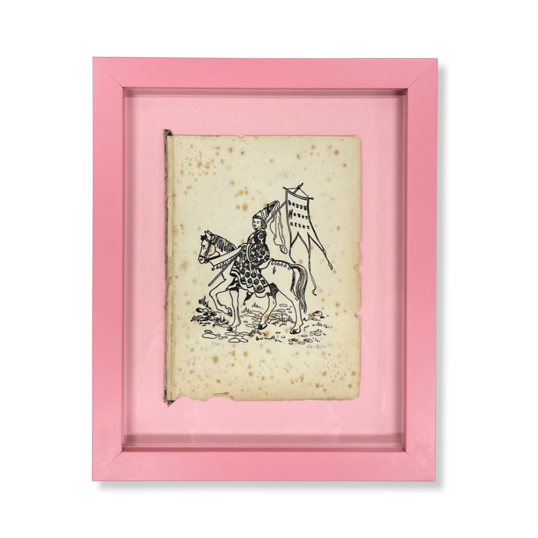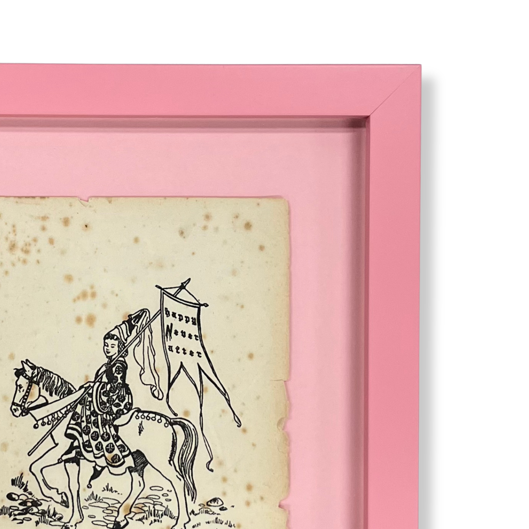 Framed floated on a pink mount, set back in a pink frame measuring 26 x 31.5 cm