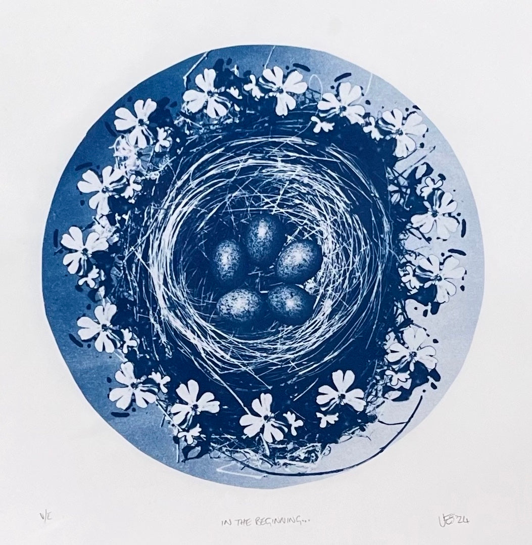 Connection to the natural world is central to Jane’s practice and she is a passionate advocate for sustainability and climate awareness. Based in Essex - the trees, landscape and creatures around her are a constant source of inspiration and joy. She playfully explores a variety of original and alternative printmaking techniques such as cyanotype, linoprint, photopolymer etching, anthotype and lumen printing. These processes allow her to experiment with texture, mark-making and colour, whilst often leading to ‘happy accidents’ and resulting in unique, bold and evocative representations of our shared planet.
