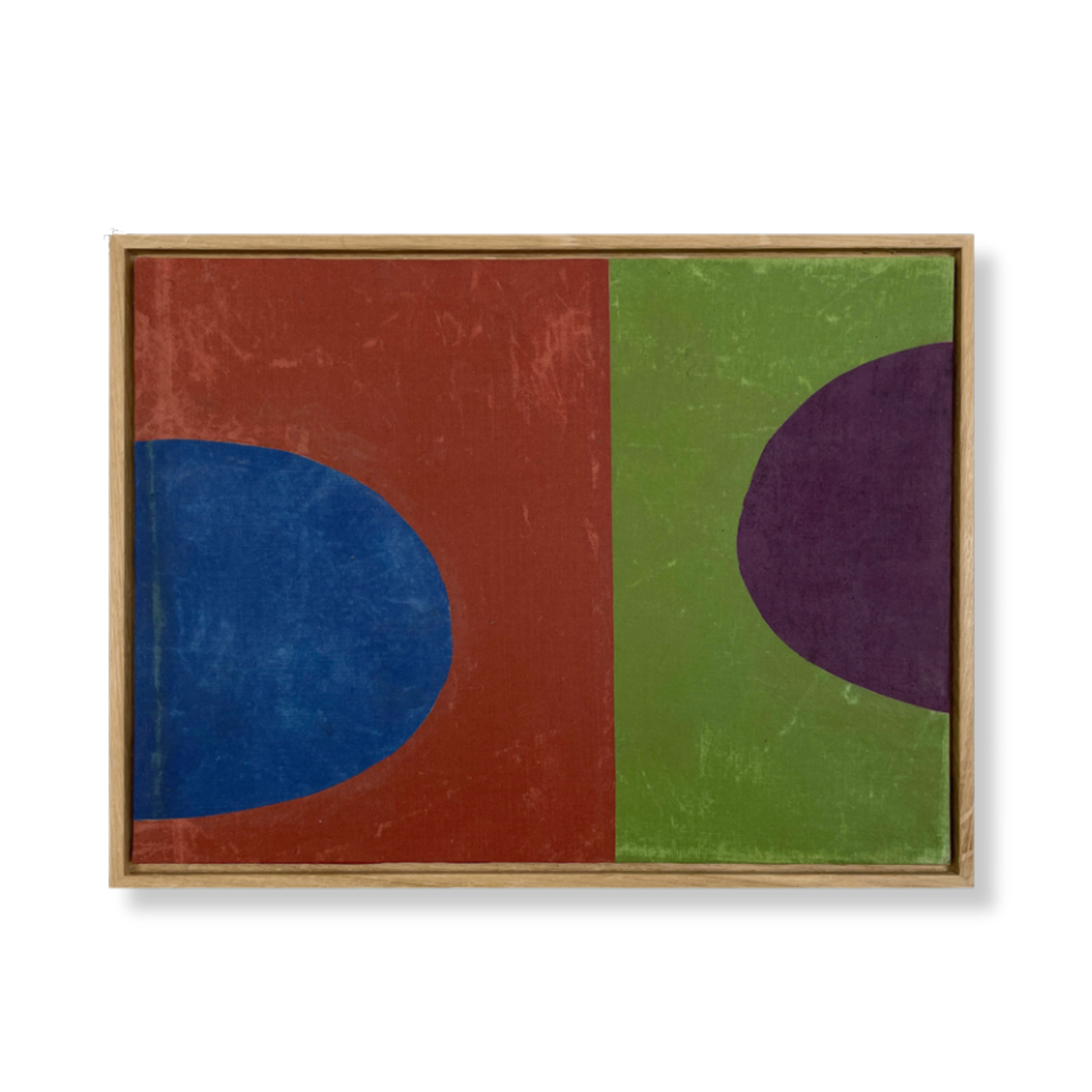 Original artwork created from vintage book cloth on board, framed floating within a handmade sustainably sourced slim oak tray frame (no glass)