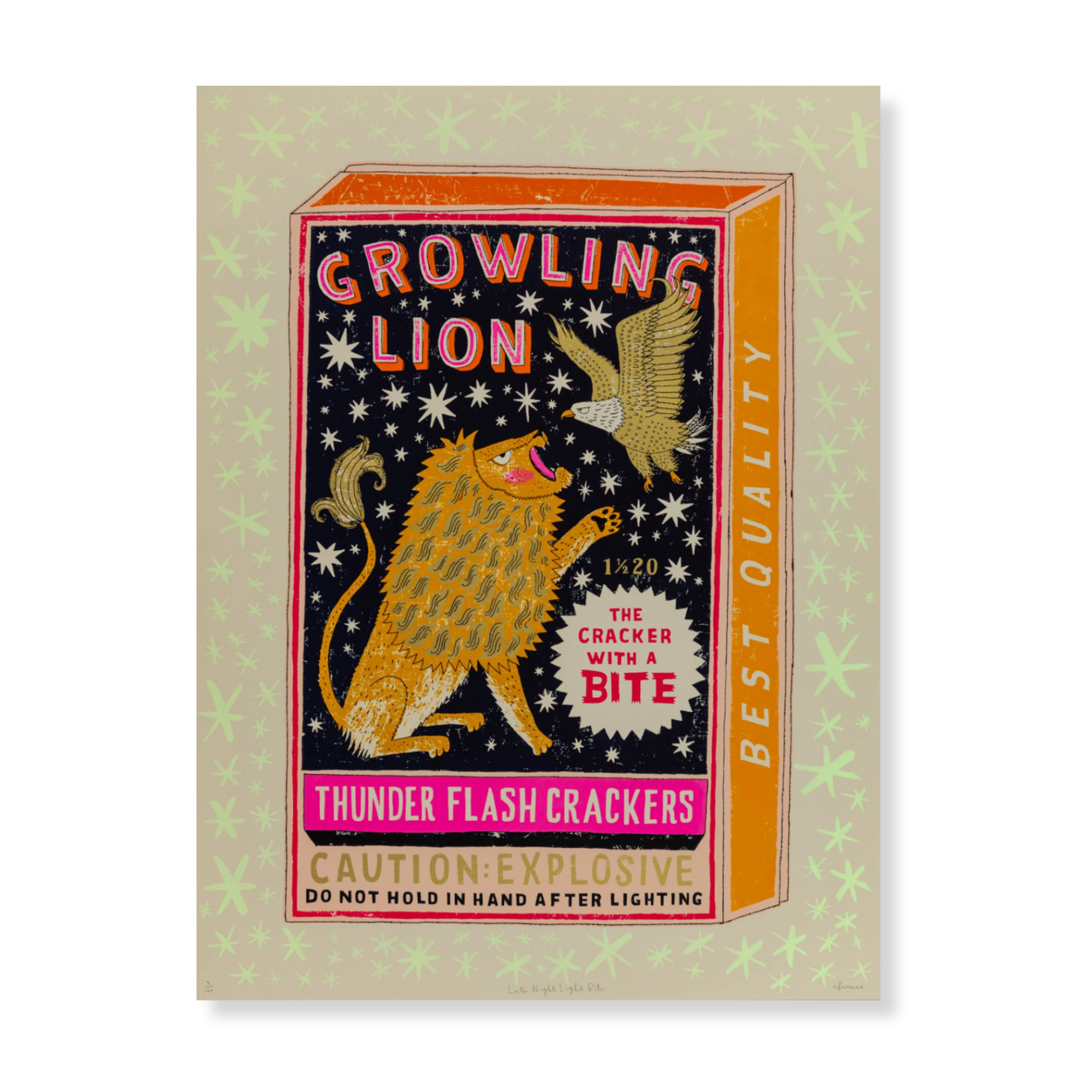 Signed and numbered limited edition of 100 screen print on 300gsm Fabriano paper measuring 53 x 70 cm. There are 10 layers of colour including glow in the dark opalescent stars.