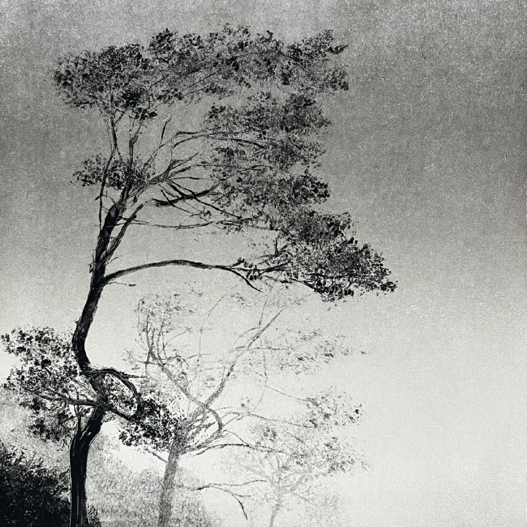 Through Fiona’s deeply atmospheric and evocative original monotypes, we step into the forest. Into the unknown, the wild and a space laden with metaphysical meaning and narrative. An important symbol for Fiona, the forest is both a mysterious, haunting place full of uncertainty and fragility, and a healing, restorative space for the planet and the individual.