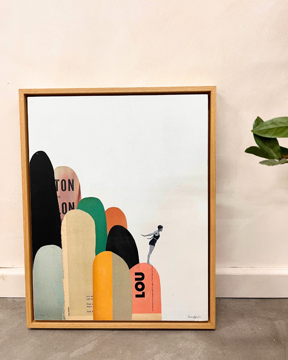 As a child Cassia loved to destroy books - creating new outfits and stories for the characters she found within the pages. Now, as a Brighton-based paper collage artist, she continues this curious and whimsical collaboration between ideas old and new. The found and vintage pages and papers she uses are full of stains, rips and hand lettering. These marks of their past lives often become a jumping off point for Cassia’s re-imagining, as she deftly creates new narratives through unexpected and often nostalgic compositions.