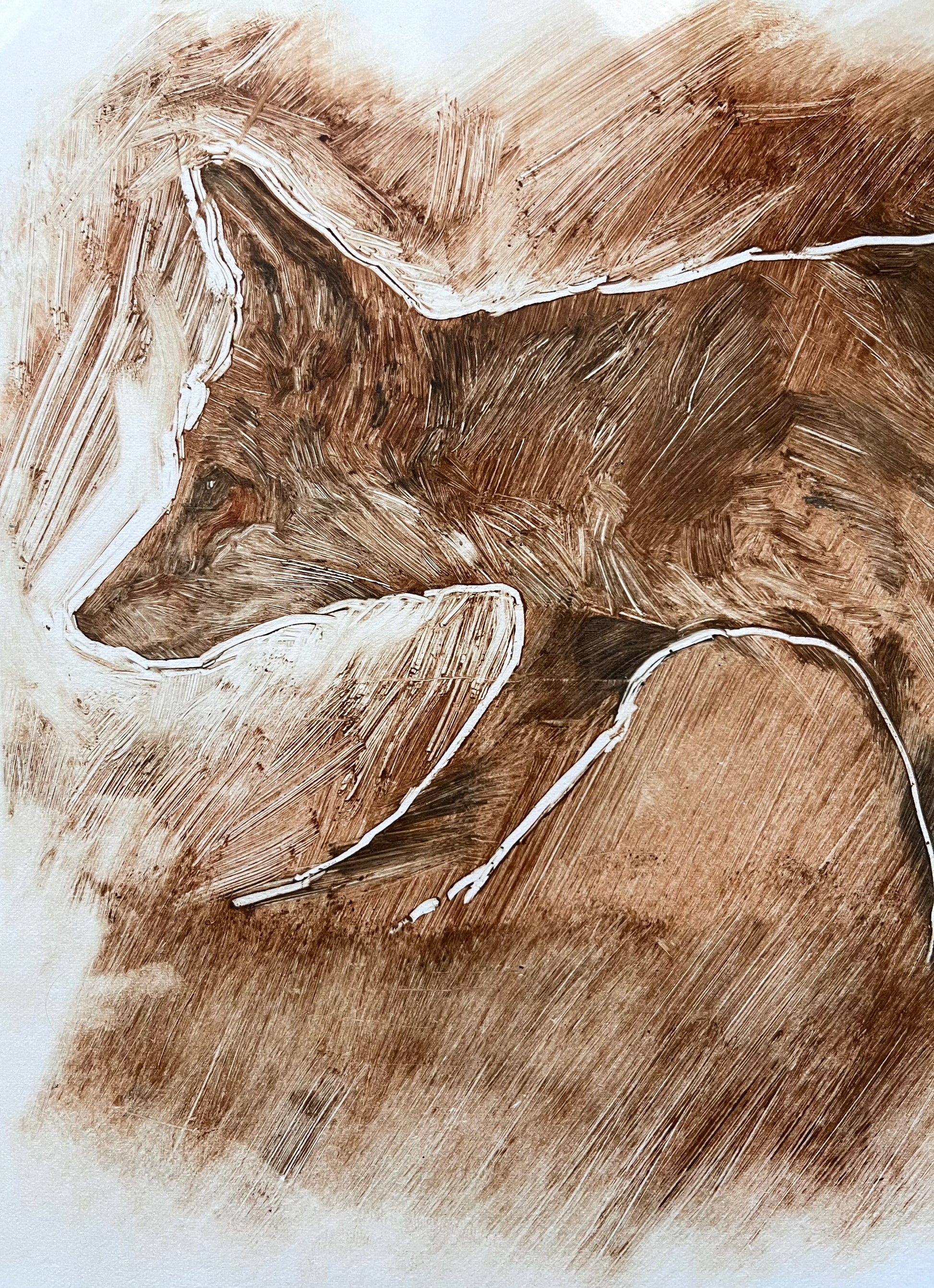 A distinctive and intuitive visual language sets Emerson apart as an exciting contemporary printmaker and painter. Each of the painterly strokes and marks used in the creation of his artworks celebrate the process of making itself - alive with texture, movement and expression. Emerson is interested in our relationship to the natural world, working to capture a direct and organic response to his subjects. These are often birds, foxes, deer and other animals which seem to be caught in motion - their energy and power conveyed through gestural, painterly mark-making.