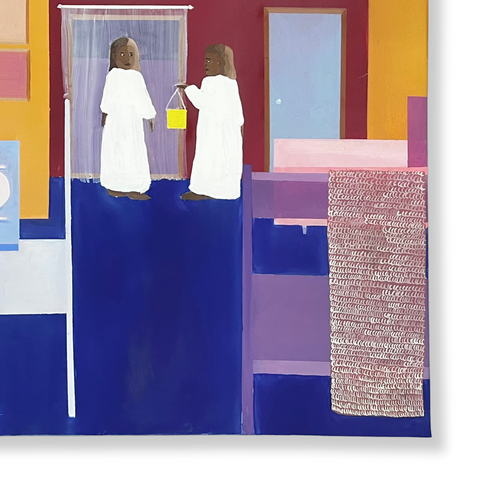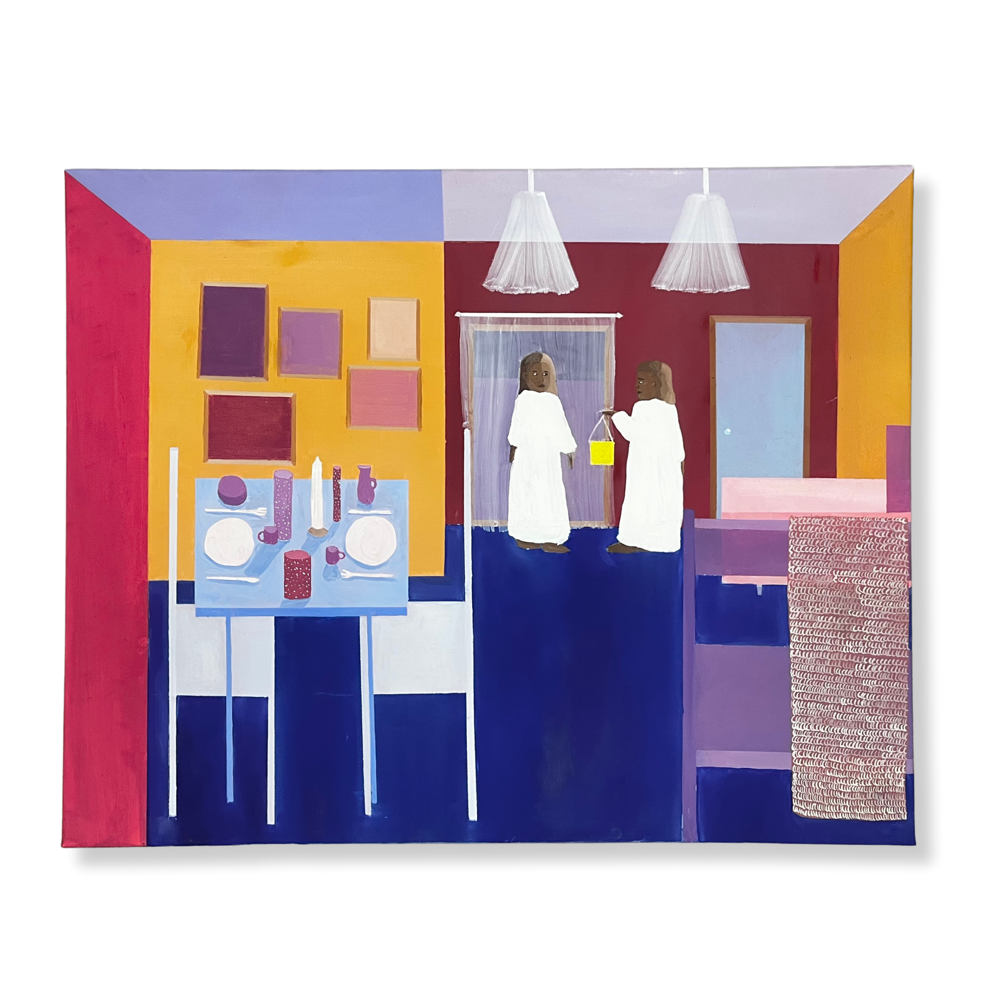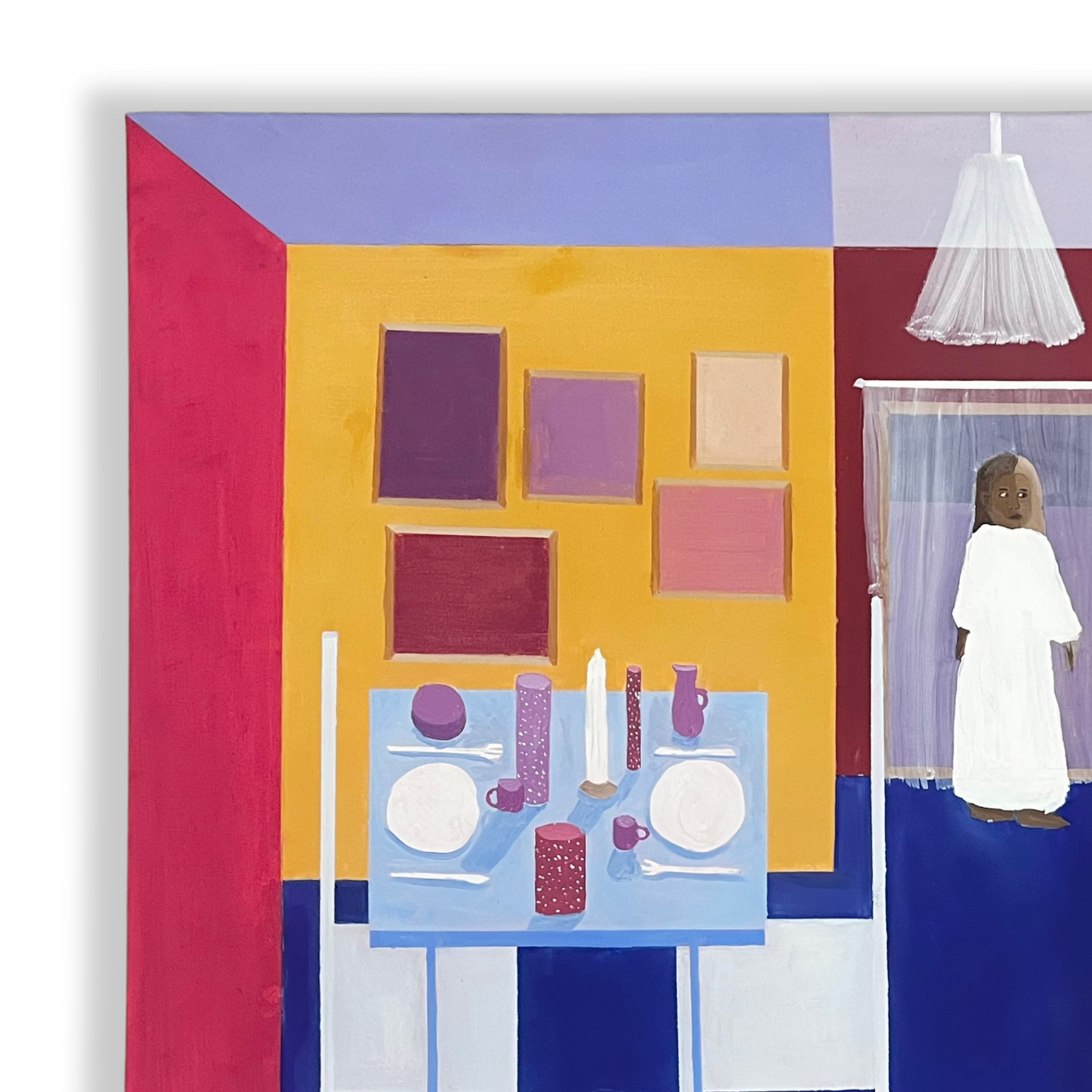 Kuda Mushangi's oil paintings delve into the profound emotional complexities of migration, grounding his practice in rich narratives, storytelling, and allegory. His work fearlessly weaves together universal themes of love, loneliness, joy, and self-doubt, drawing from personal experience while transcending cultural boundaries.
