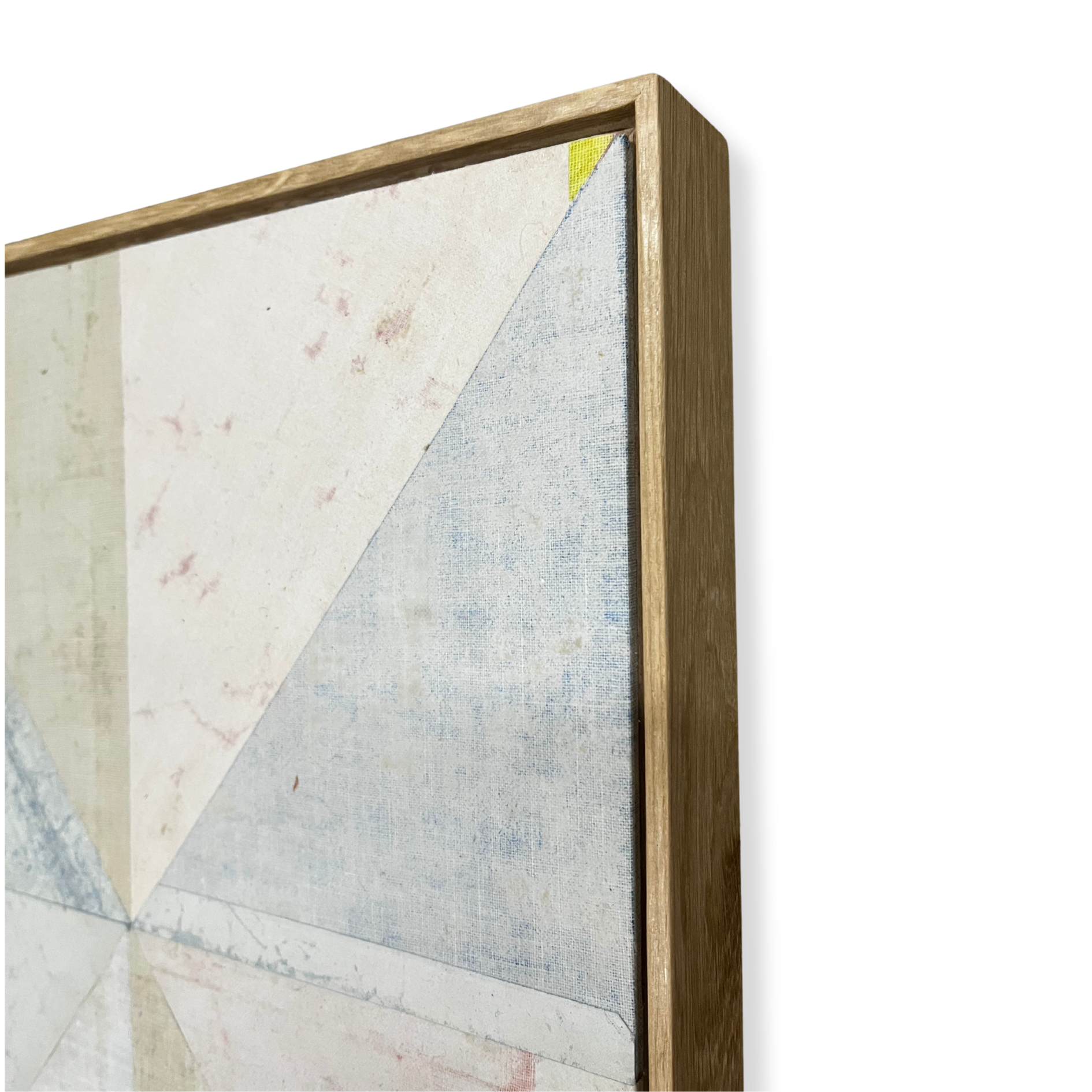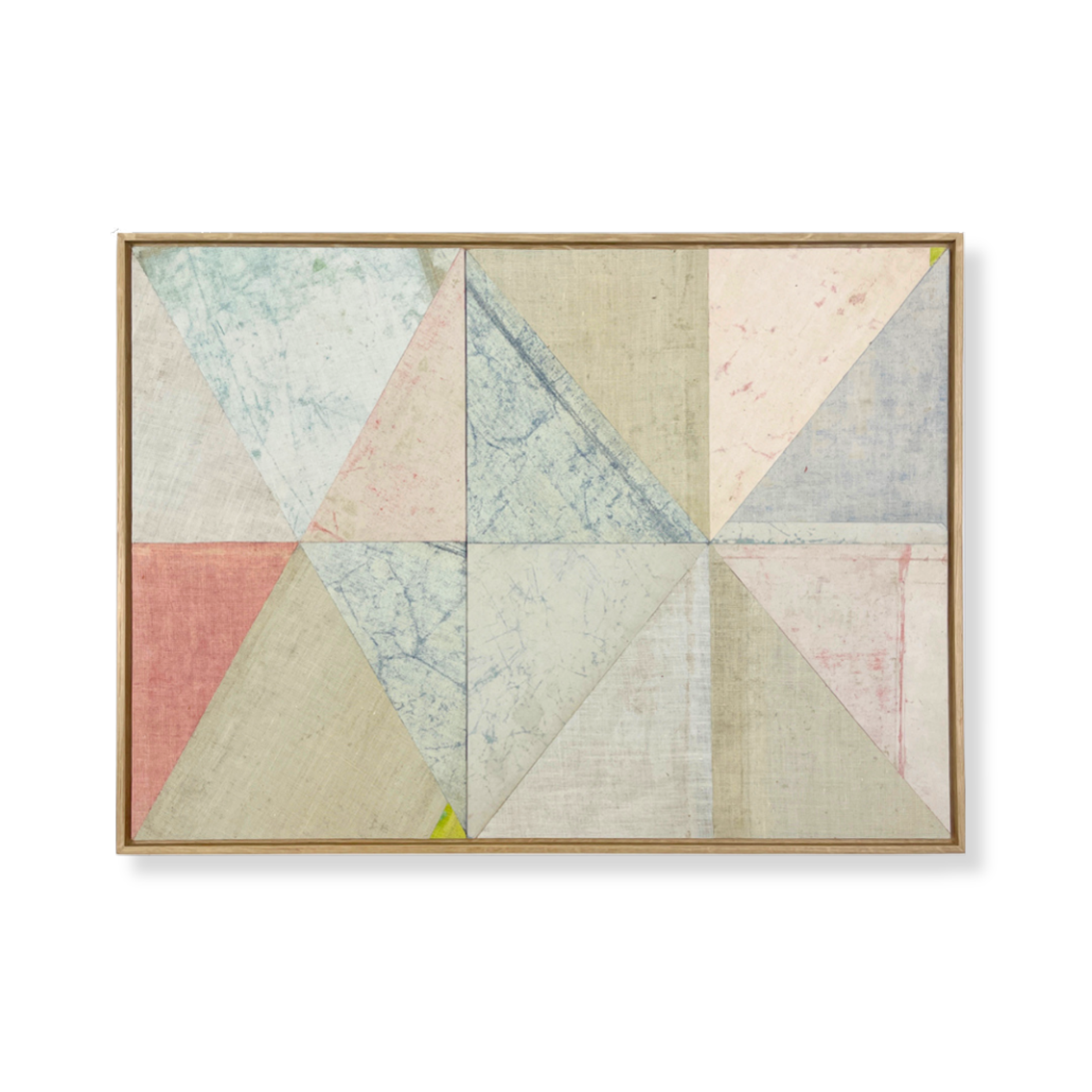 Original artwork created from vintage book cloth on board, framed floating within a handmade sustainably sourced slim oak tray frame (no glass)