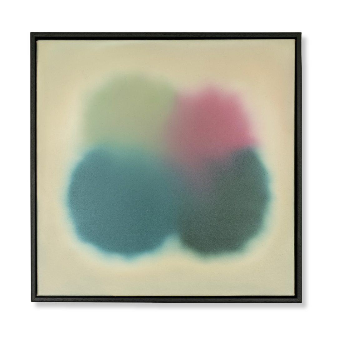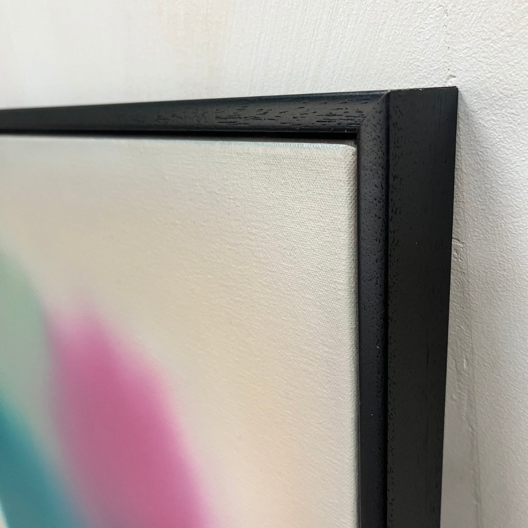 Original oil on canvas, framed in a black wood floating tray frame. The framed size is 52.5 x 52.5 cm.