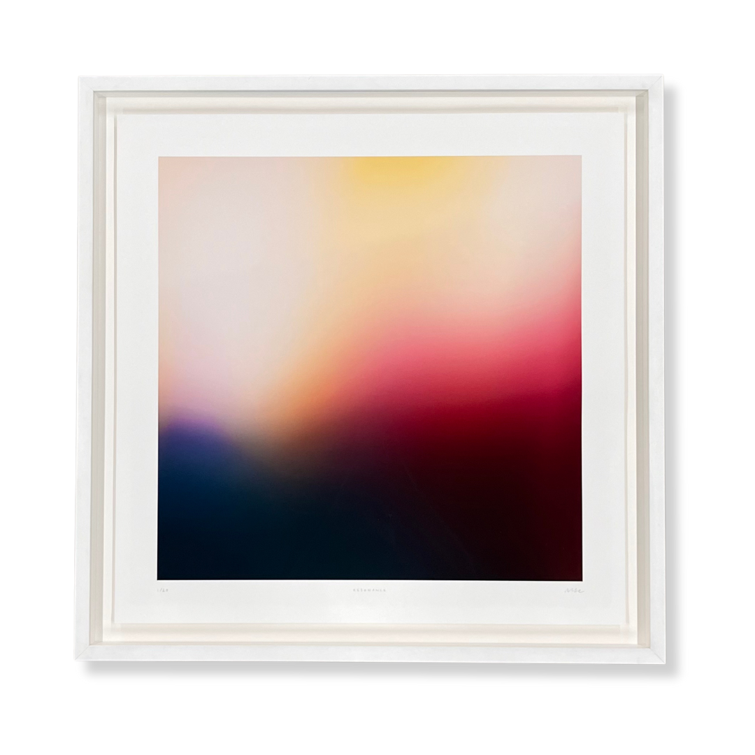 The image size is 50 x 50 cm and the paper size is 60 x 60 cm. The artwork is framed floated and raised in a white wood box, behind low reflect glass. The framed size is 68.5 x 68.5 cm.