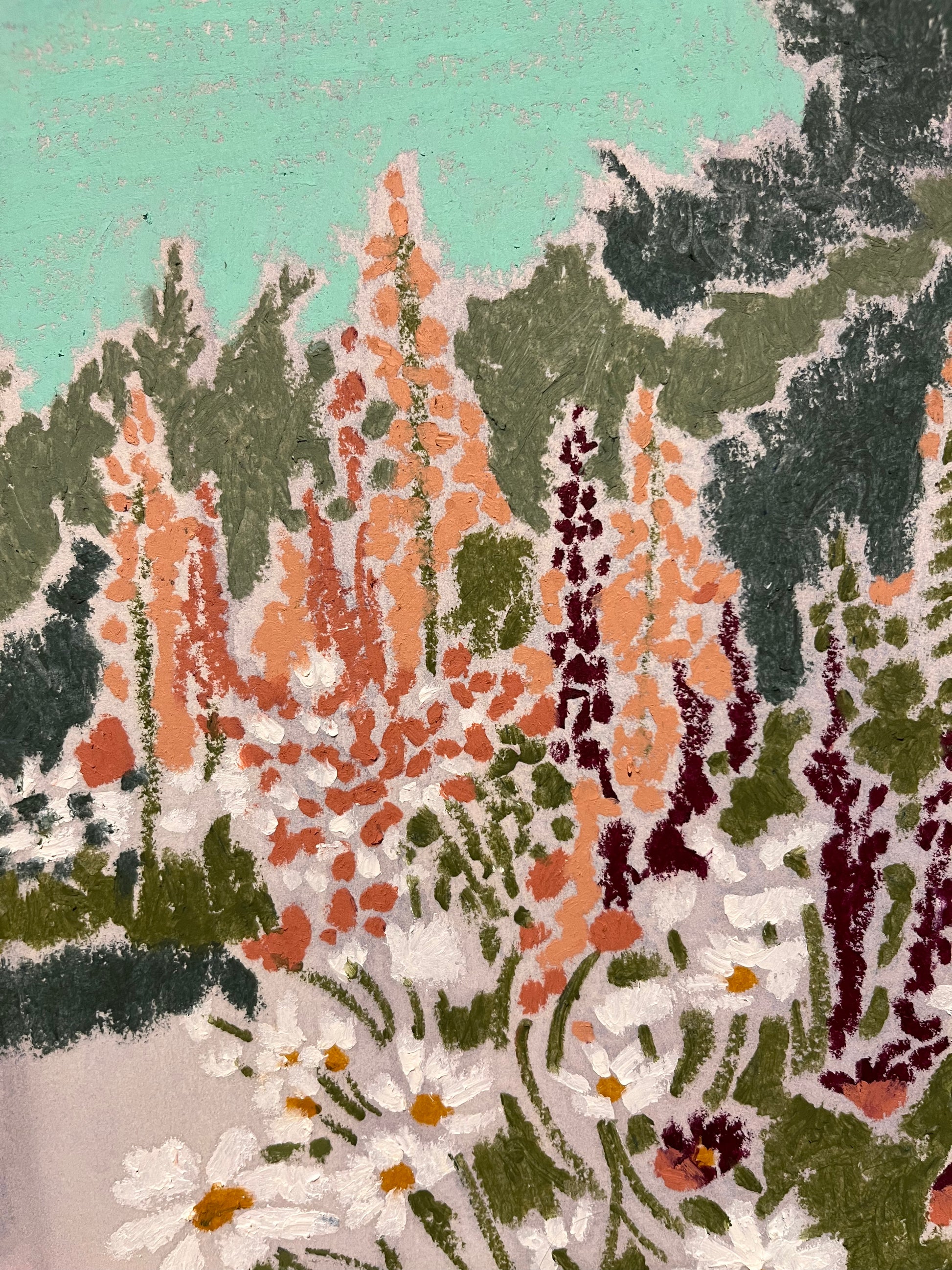 Johanna is an East London-based artist who uses a unique visual language to approach portraiture, landscape and floral artworks. With an experimental and playful approach to mark-making, she rarely uses a paintbrush and instead uses tools which allow her to blur the boundaries between representation and abstraction.