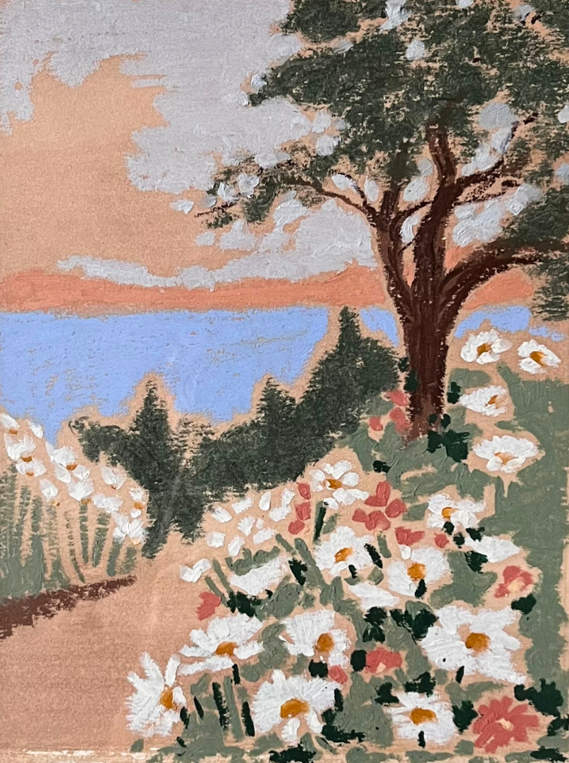 Johanna is an East London-based artist who uses a unique visual language to approach portraiture, landscape and floral artworks. With an experimental and playful approach to mark-making, she rarely uses a paintbrush and instead uses tools which allow her to blur the boundaries between representation and abstraction.