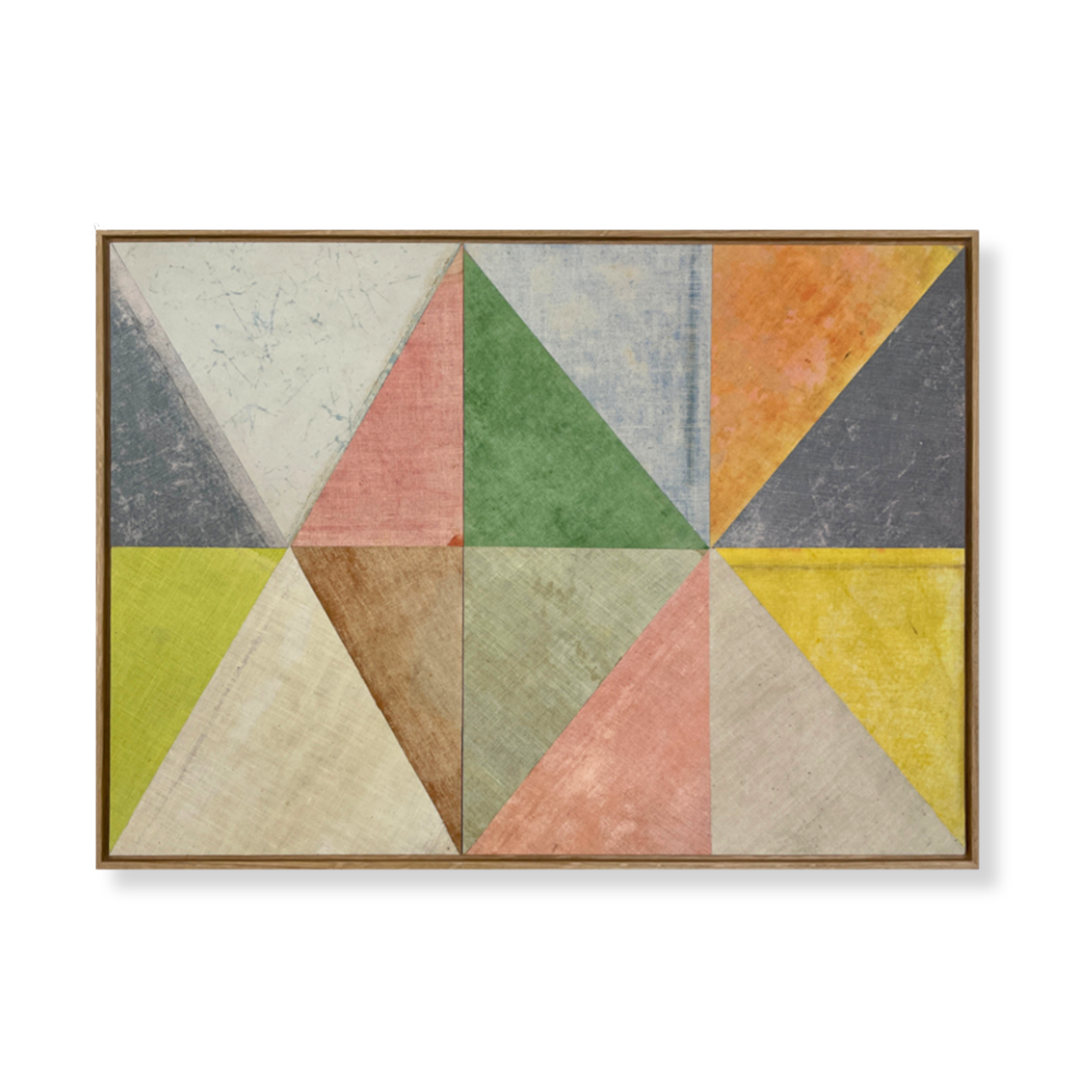 Original artwork created from vintage book cloth on board, framed floating within a handmade sustainably sourced slim oak tray frame (no glass)