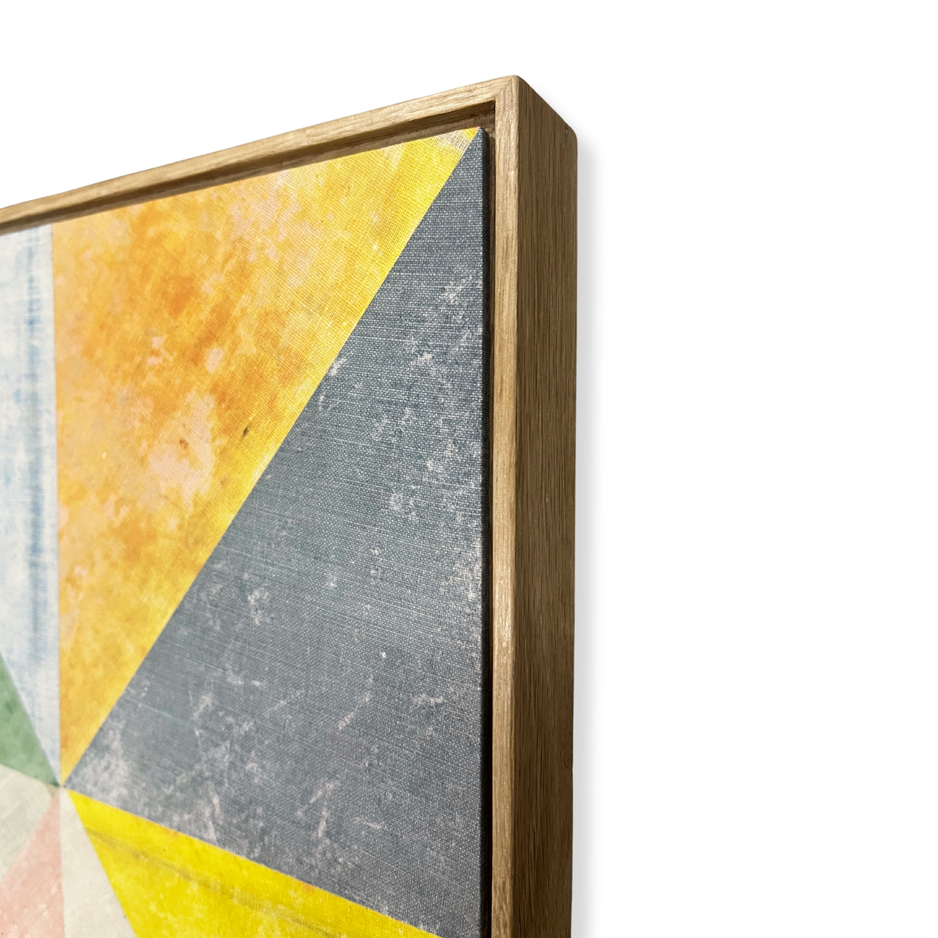 This artwork is framed in a sustainable slim oak floating tray frame, ready to hang.