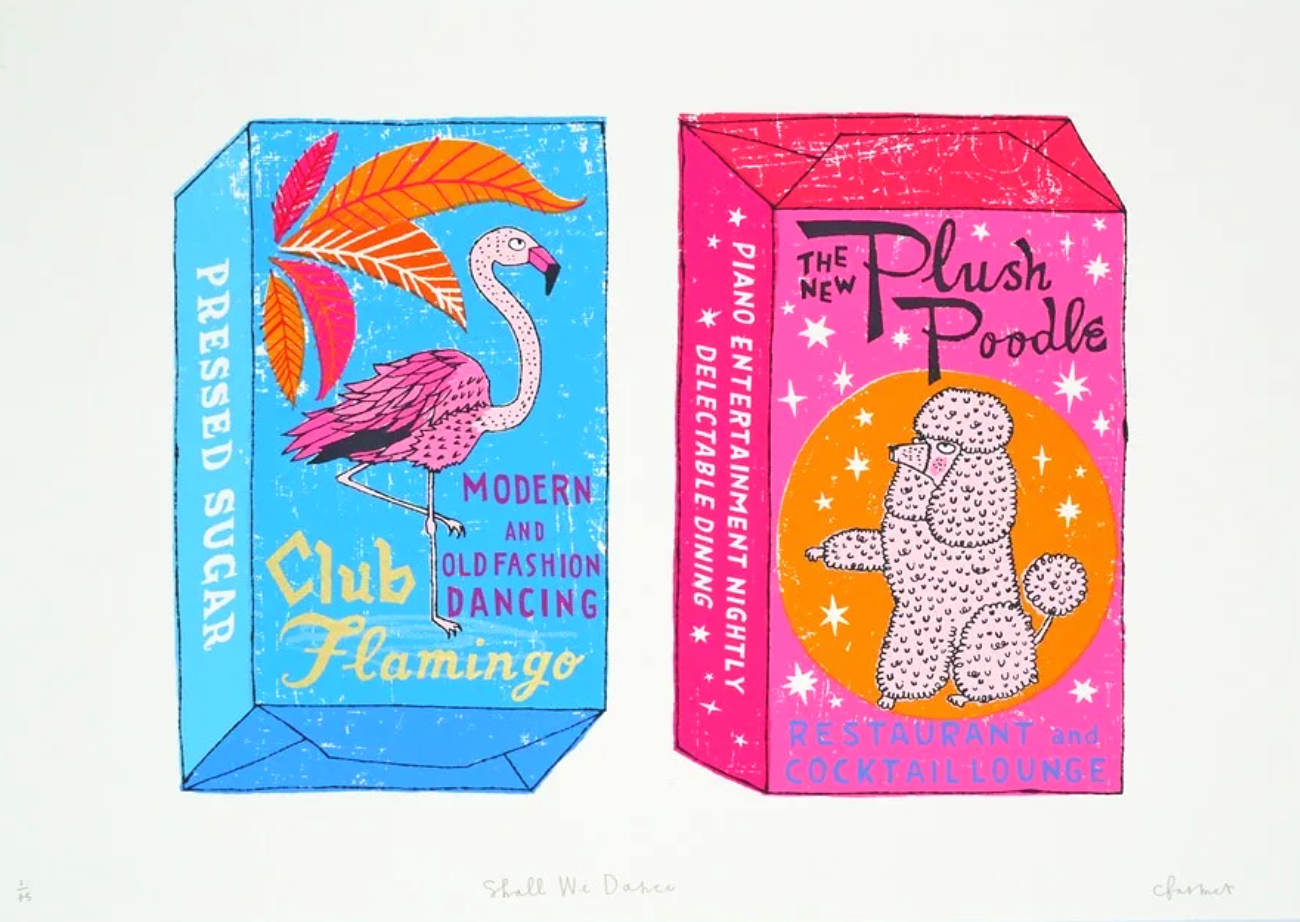Based in Bath, Charlotte is a passionate screen printer and illustrator who loves to bring play, curiosity and whimsy into intricate designs which explode with joyful colour. Eternally inspired by collections in many forms, she is interested in how nostalgia and memory overlap with the unexpected combinations of characters and imagery often discovered and cherished in found objects.