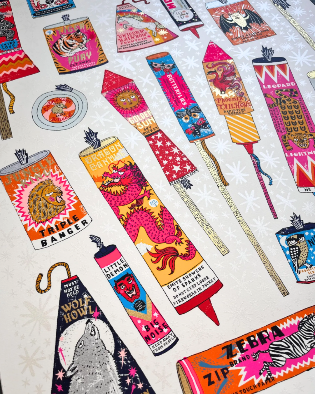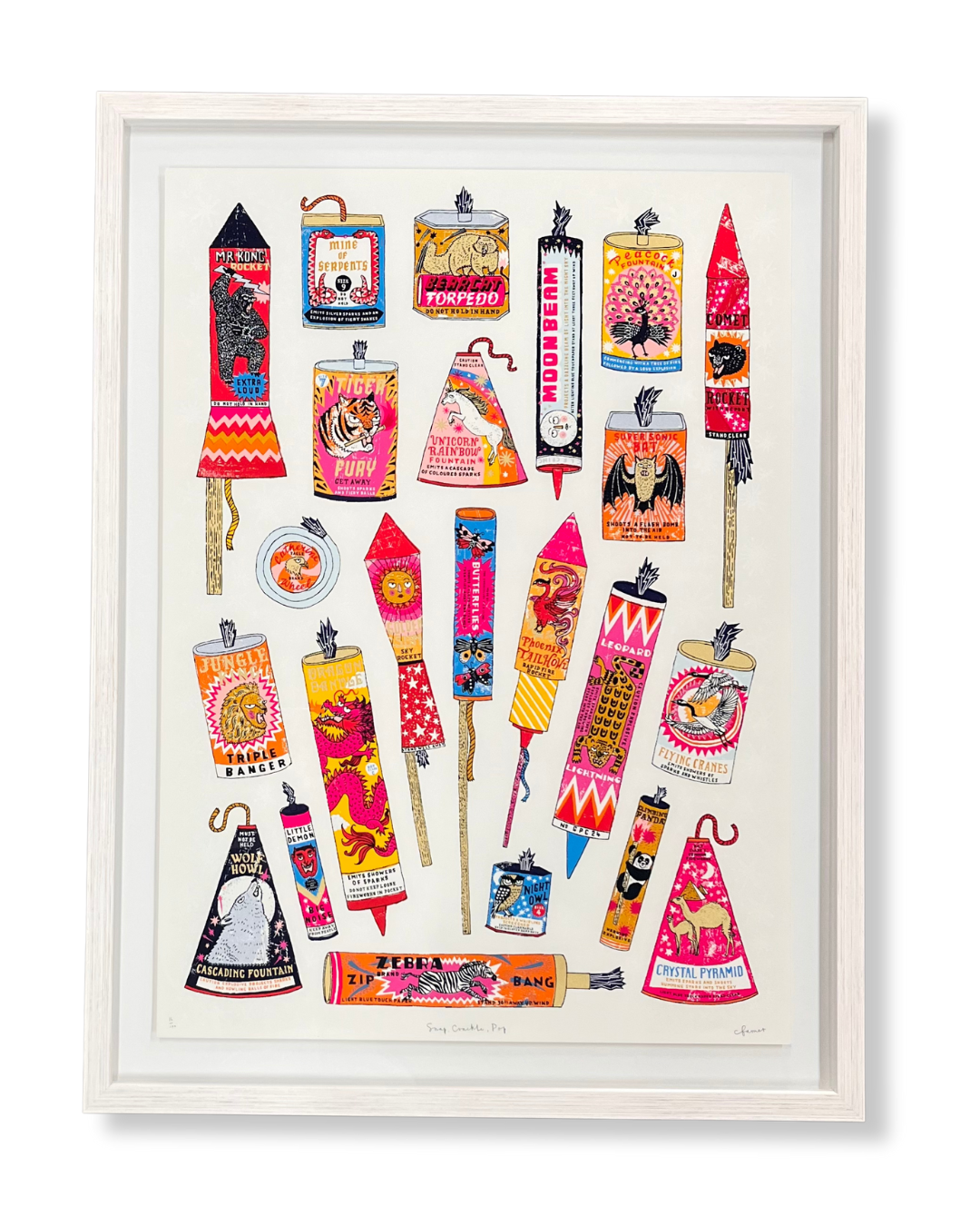 Based in Bath, Charlotte is a passionate screen printer and illustrator who loves to bring play, curiosity and whimsy into intricate designs which explode with joyful colour. Eternally inspired by collections in many forms, she is interested in how nostalgia and memory overlap with the unexpected combinations of characters and imagery often discovered and cherished in found objects.