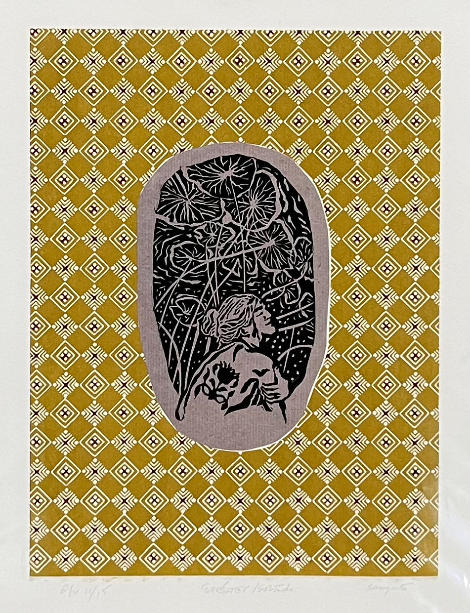 Signed and numbered limited edition variable lino print with chine-colle measuring 29 x 38 cm.
