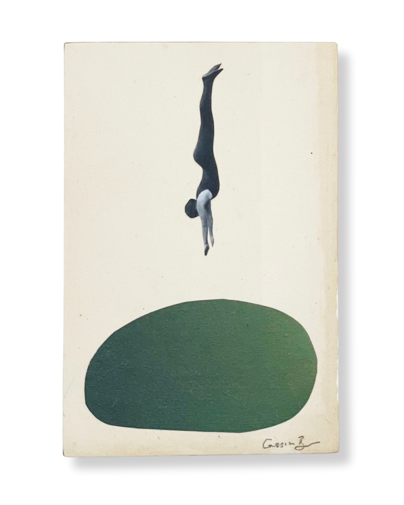As a child Cassia loved to destroy books - creating new outfits and stories for the characters she found within the pages. Now, as a Brighton-based paper collage artist, she continues this curious and whimsical collaboration between ideas old and new. The found and vintage pages and papers she uses are full of stains, rips and hand lettering. These marks of their past lives often become a jumping off point for Cassia’s re-imagining, as she deftly creates new narratives through unexpected and often nostalgic compositions.
