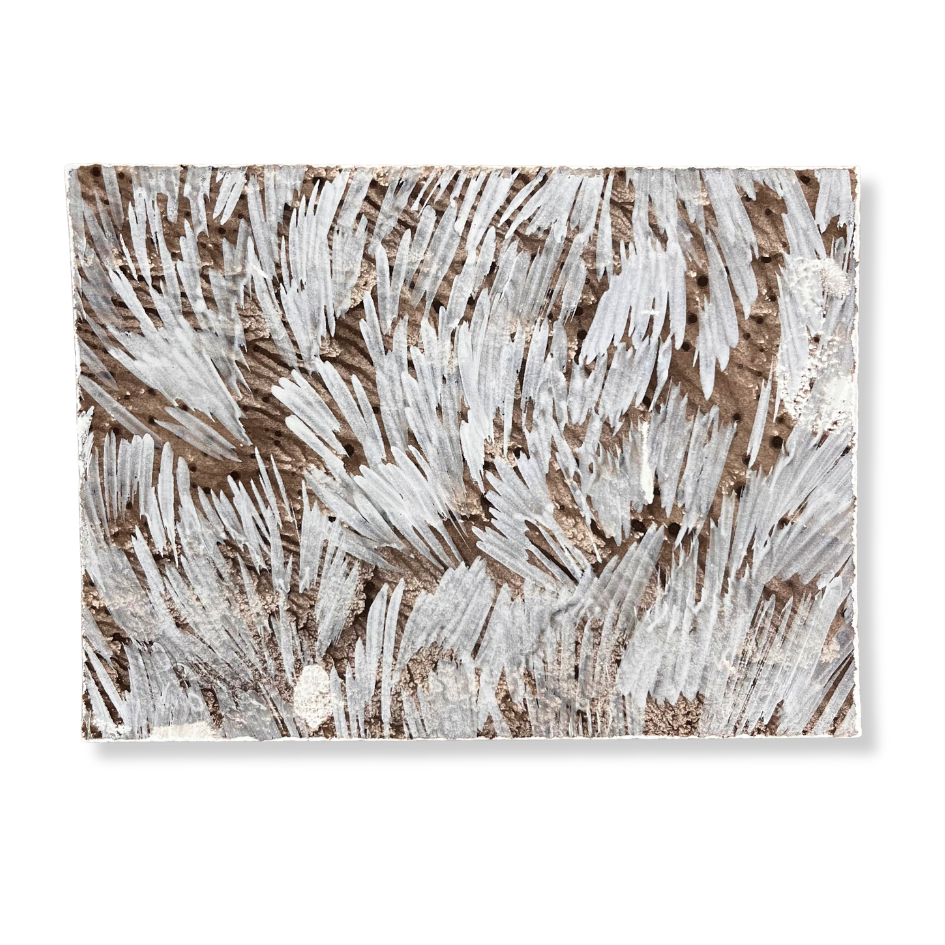 Mixing her own foraged earth pigments to create bespoke handmade watercolours, Lisa’s careful and delicate paintings explore our relationship to the earth’s resources. She is a passionate advocate of eco-consciousness and her work focuses on sustainability, climate change and the nature of existence. Each of her feathery, delicate marks ask us to consider our own individual marks, footprints, patterns and impact in the world, alongside the interconnectedness of all things.