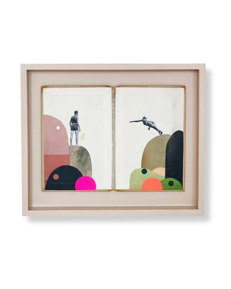 As a child Cassia loved to destroy books - creating new outfits and stories for the characters she found within the pages. Now, as a Brighton-based paper collage artist, she continues this curious and whimsical collaboration between ideas old and new. The found and vintage pages and papers she uses are full of stains, rips and hand lettering. These marks of their past lives often become a jumping off point for Cassia’s re-imagining, as she deftly creates new narratives through unexpected and often nostalgic compositions.