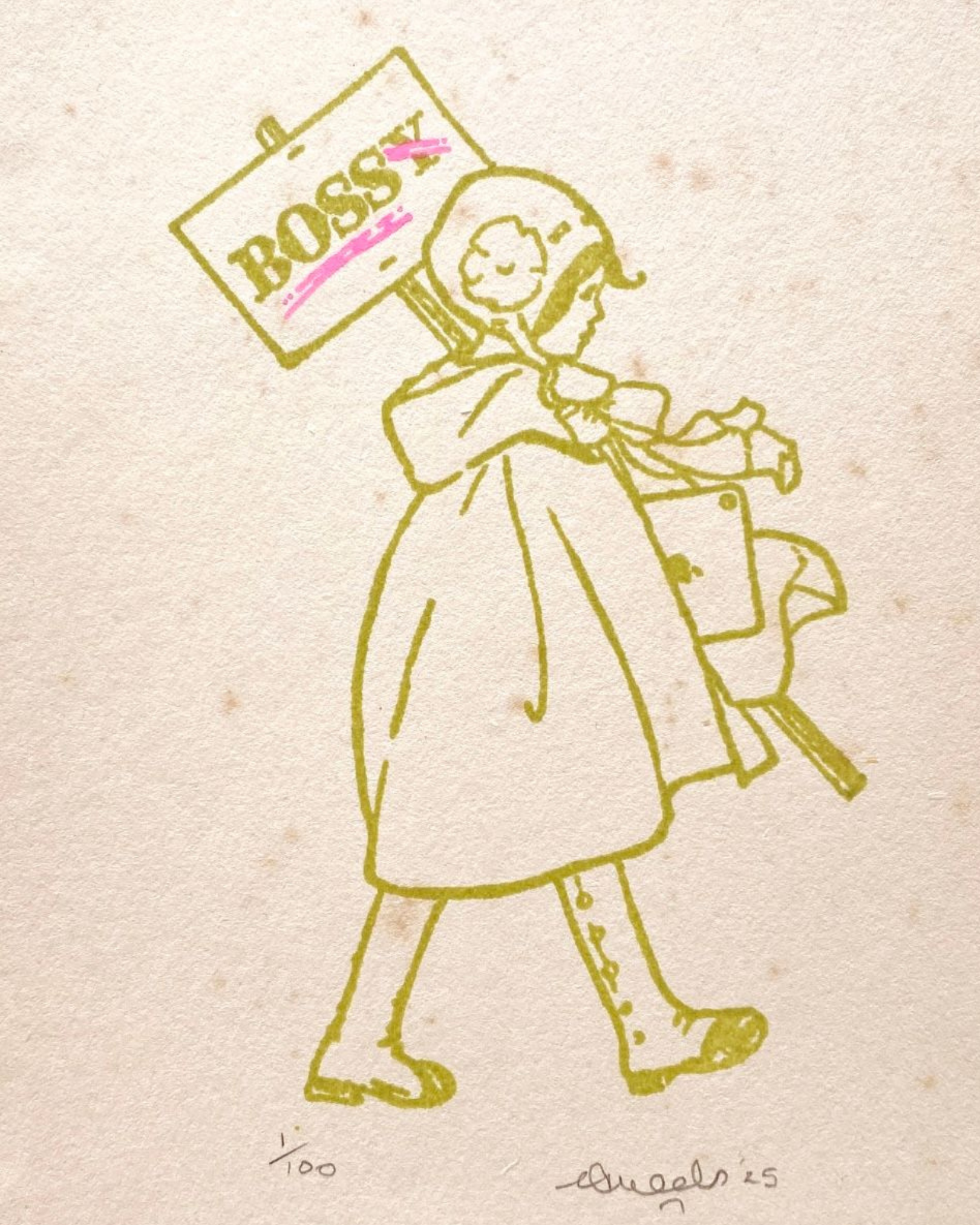 Ceal is a London based artist who has created a unique and recognisable visual language using vintage illustrations as her springboard. Through traditional and contemporary printmaking techniques she contrasts society’s expectations of young people today with the imposing standards of the past. Always playfully juxtaposing ideas and imagery, the innocent figures in her work often explore ideas such as protest, freedom of speech, rebellion, feminism and human rights.