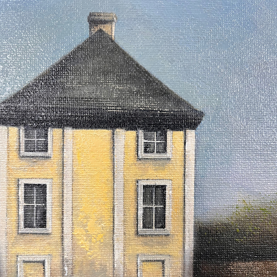 Looking closely at light and shadow, Chris blends painterly realism with intriguing narrative. He pays attention to the everyday, the half-noticed and the overlooked. From an isolated building next to a canal to an unremarkable row of houses - Chris collects imagery which has sparked his imagination and transforms it. By placing these single houses into unexpected rural spaces he changes the context and thus creates a new narrative - steeped in otherness, nostalgic beauty and a hint of the surreal. A black and white cat traces his every step.