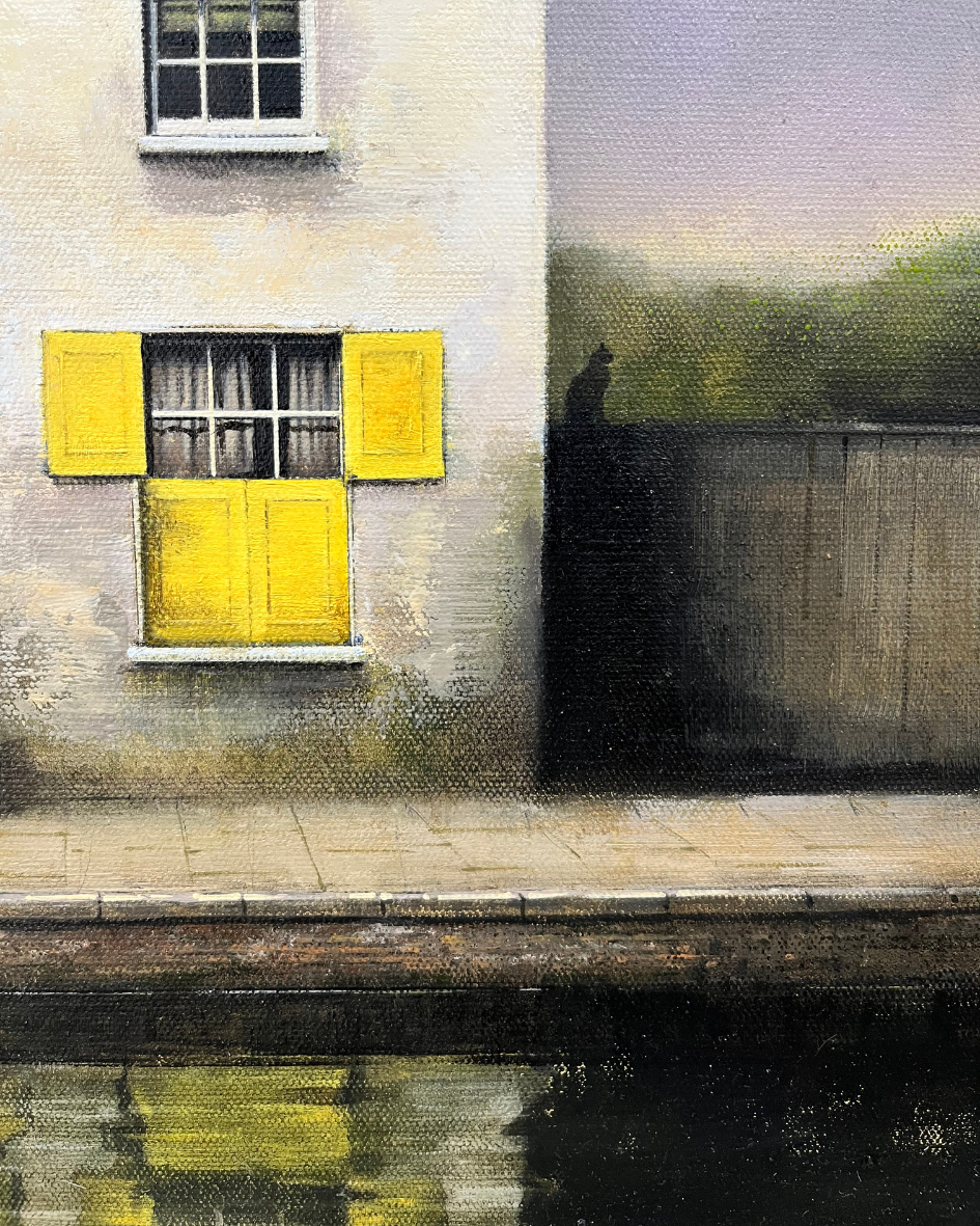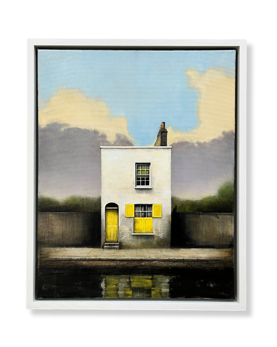 Looking closely at light and shadow, Chris blends painterly realism with intriguing narrative. He pays attention to the everyday, the half-noticed and the overlooked. From an isolated building next to a canal to an unremarkable row of houses - Chris collects imagery which has sparked his imagination and transforms it. By placing these single houses into unexpected rural spaces he changes the context and thus creates a new narrative - steeped in otherness, nostalgic beauty and a hint of the surreal. A black and white cat traces his every step.