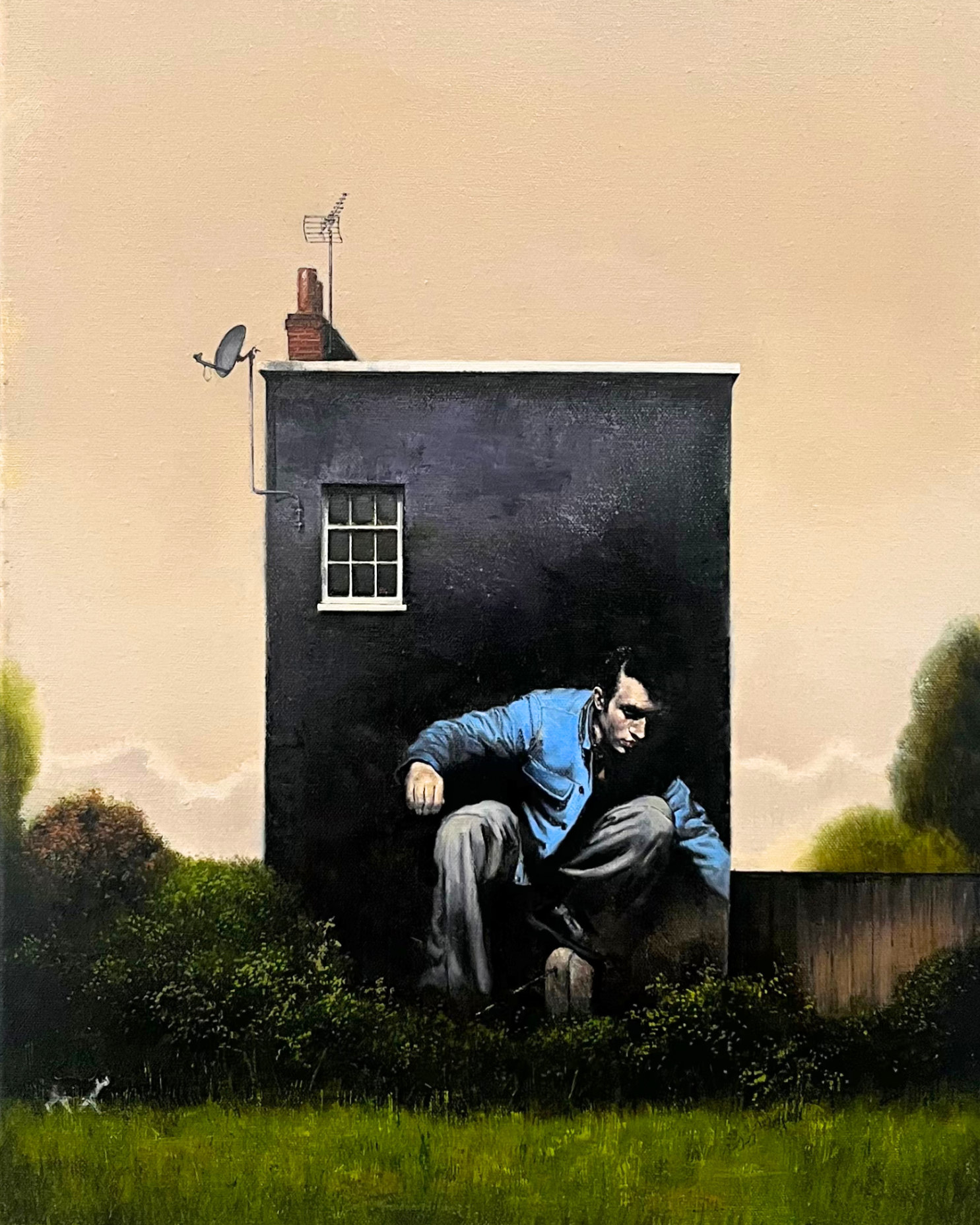 Launching a new series of works, this very special painting combines Chris's much-admired architectural house paintings with his previous work in portraiture. The house featured is inspired by a Hackney building in East London, and the portrait is inspired by a painting Chris created earlier in his career.
