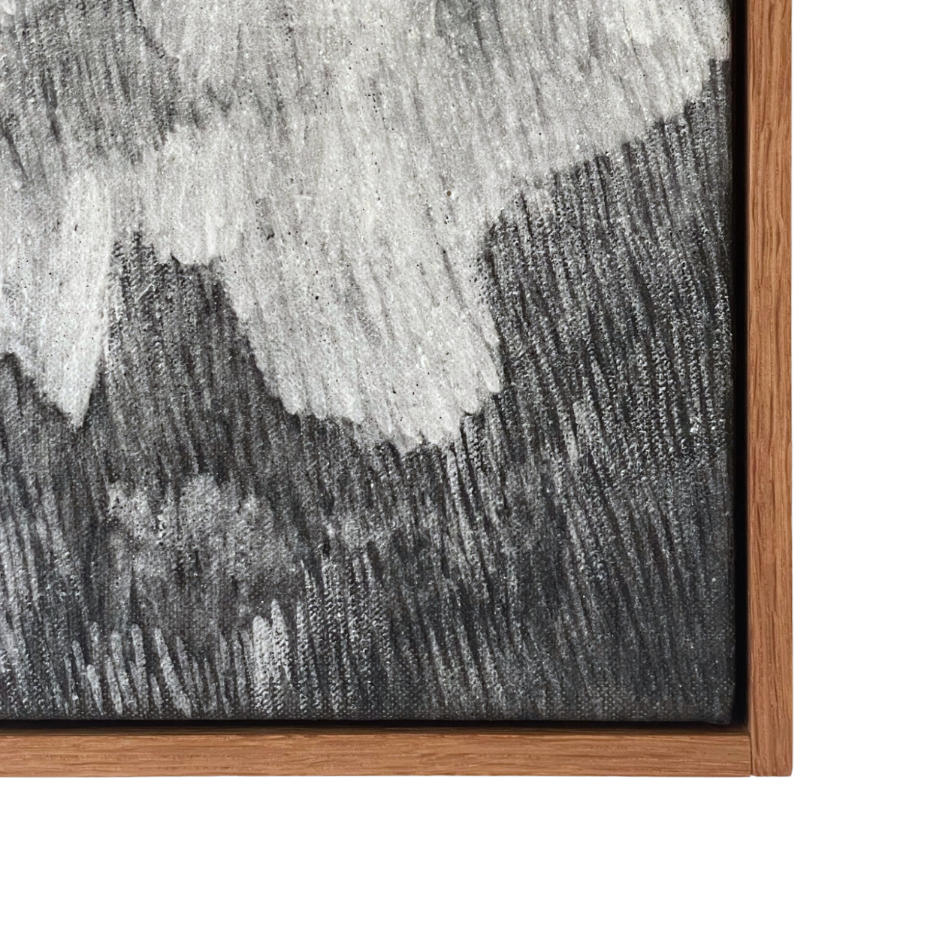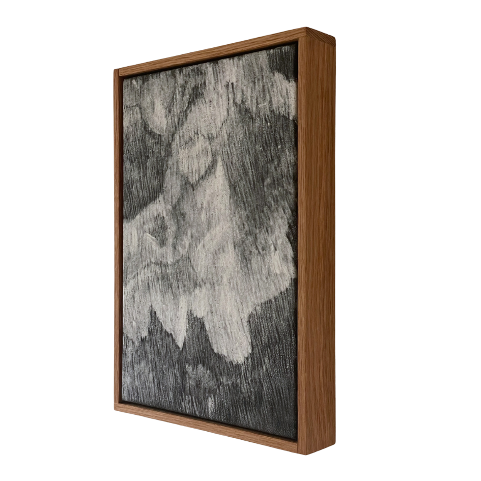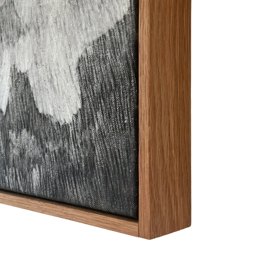 This artwork is framed in a solid oak floating frame. It is ready to hang.
