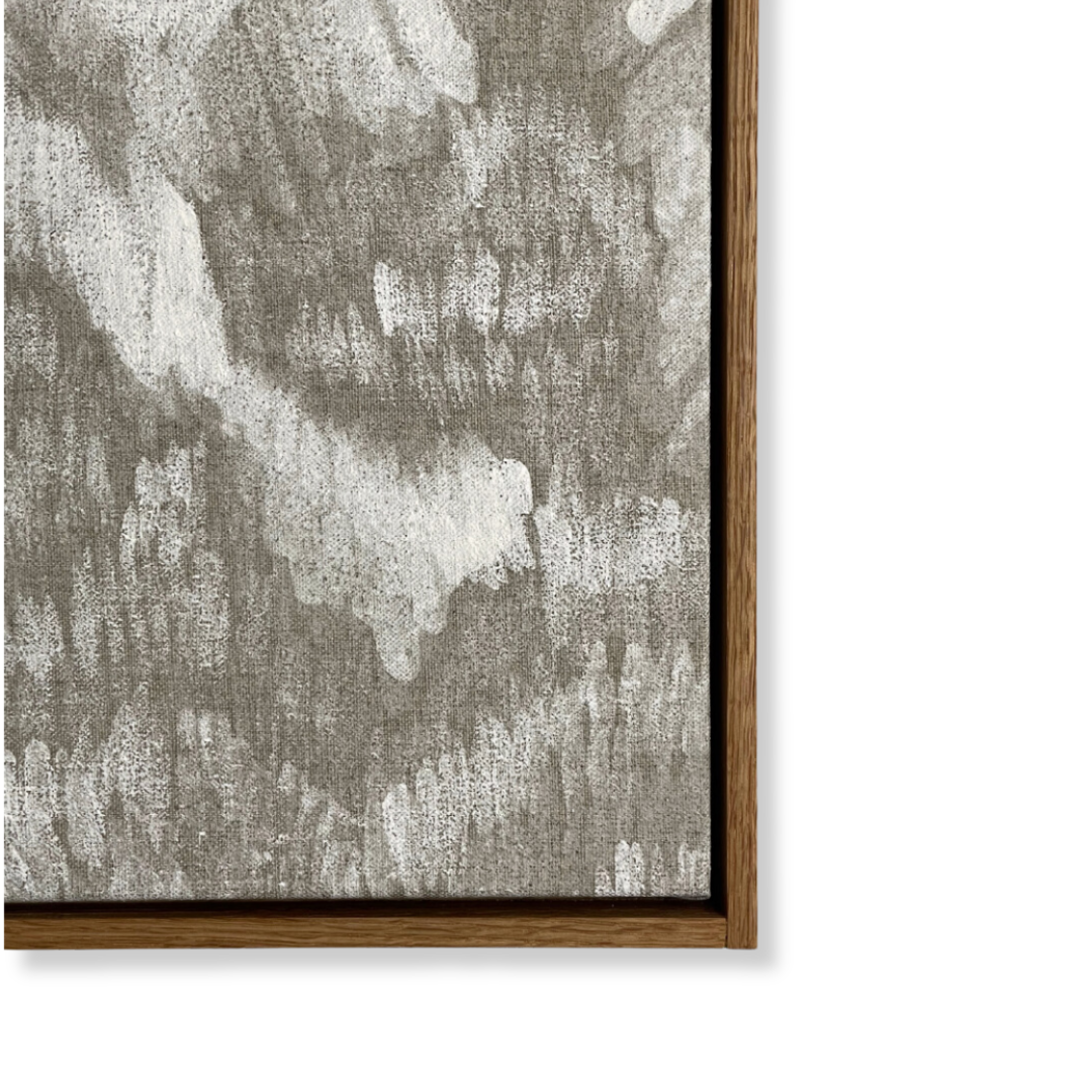 This artwork is framed in a solid oak floating frame. It is ready to hang.